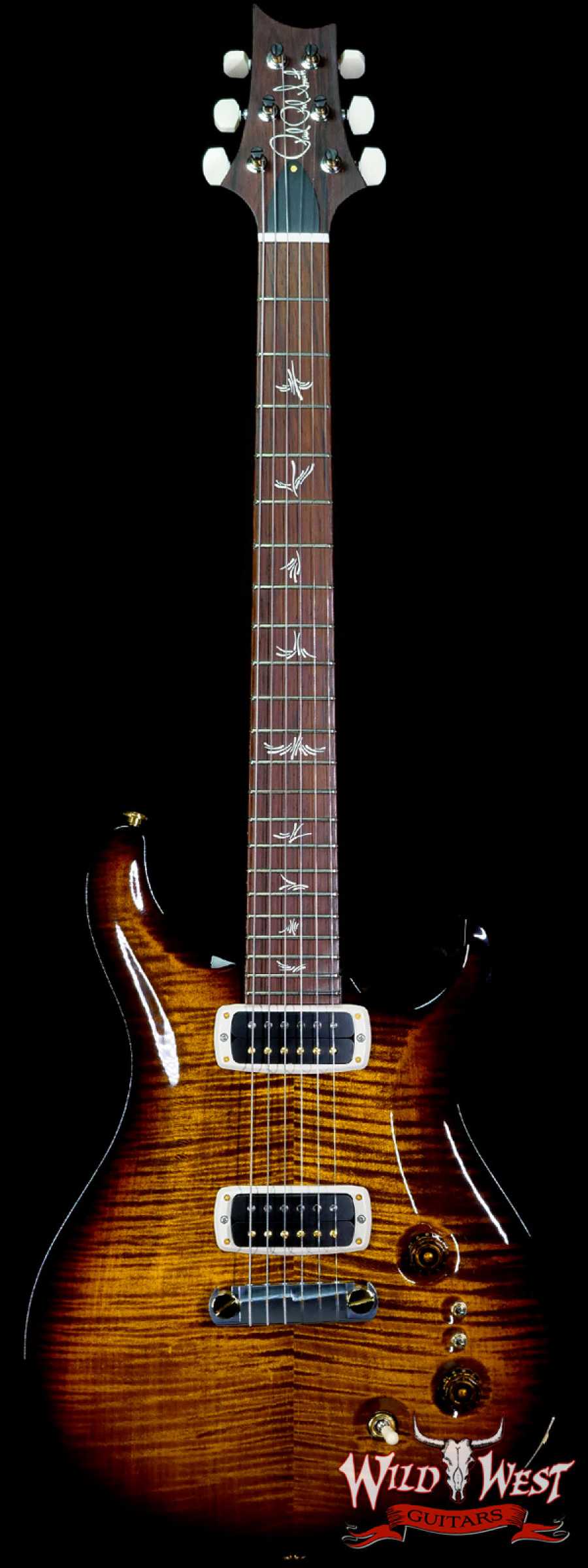 Historically, the Paul’s Guitar (like the Modern Eagle before it) has been a realization of Paul Reed Smith’s latest discoveries surrounding tone. Paul specified every appointment of this instrument from the wood selection and inlay design to the pickups. This revamped model represents Paul’s vision not only as a guitar maker but as a guitar player who needs versatile stage- and studio-ready gear that can achieve all the right tones. As a man who has every option available to him, Paul’s personal design choices include mahogany bodies with maple tops, Honduran rosewood fretboards, Nitrocellulose finishes, “Brushstroke” bird inlays, and narrow pickup bobbins. The Paul’s Guitar model also includes PRS’s TCI (Tuned Capacitance and Inductance) treble and bass pickups with two mini-toggle switches that allow players to put either or both pickups in either humbucking or true single coil mode.