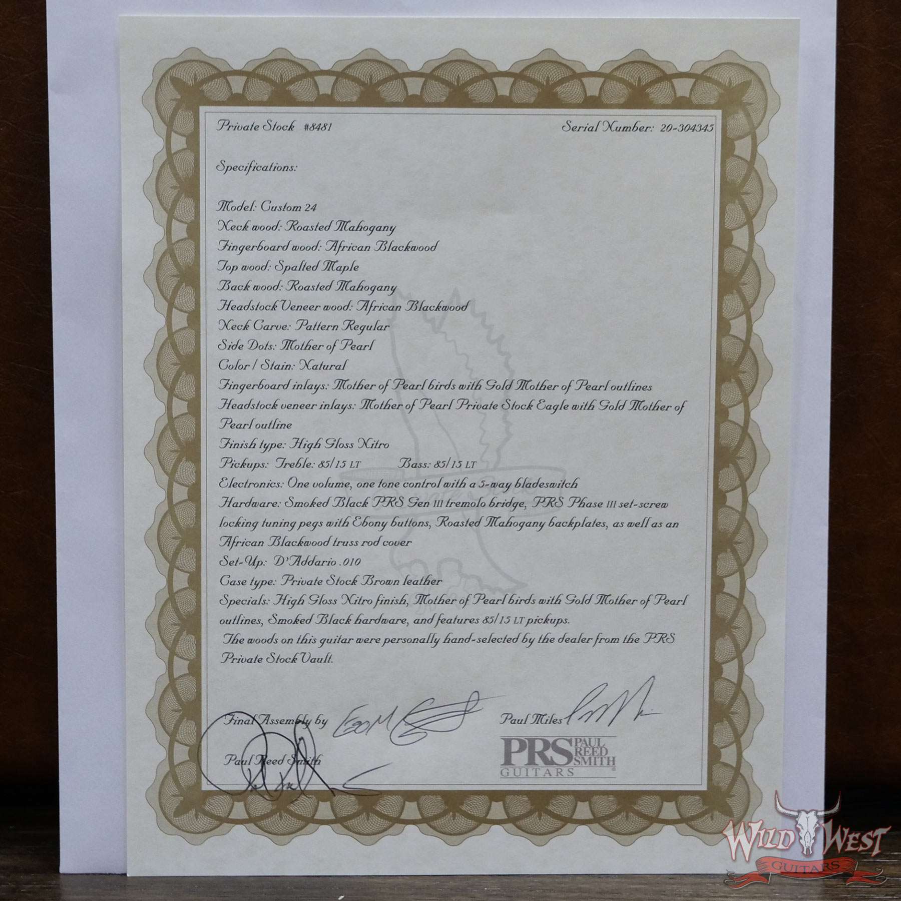 Paul Reed Smith Private Stock # 8481 Custom 24 Spalted Maple Top Roasted Flame Mahogany Neck African Blackwood Fingerboard Natural