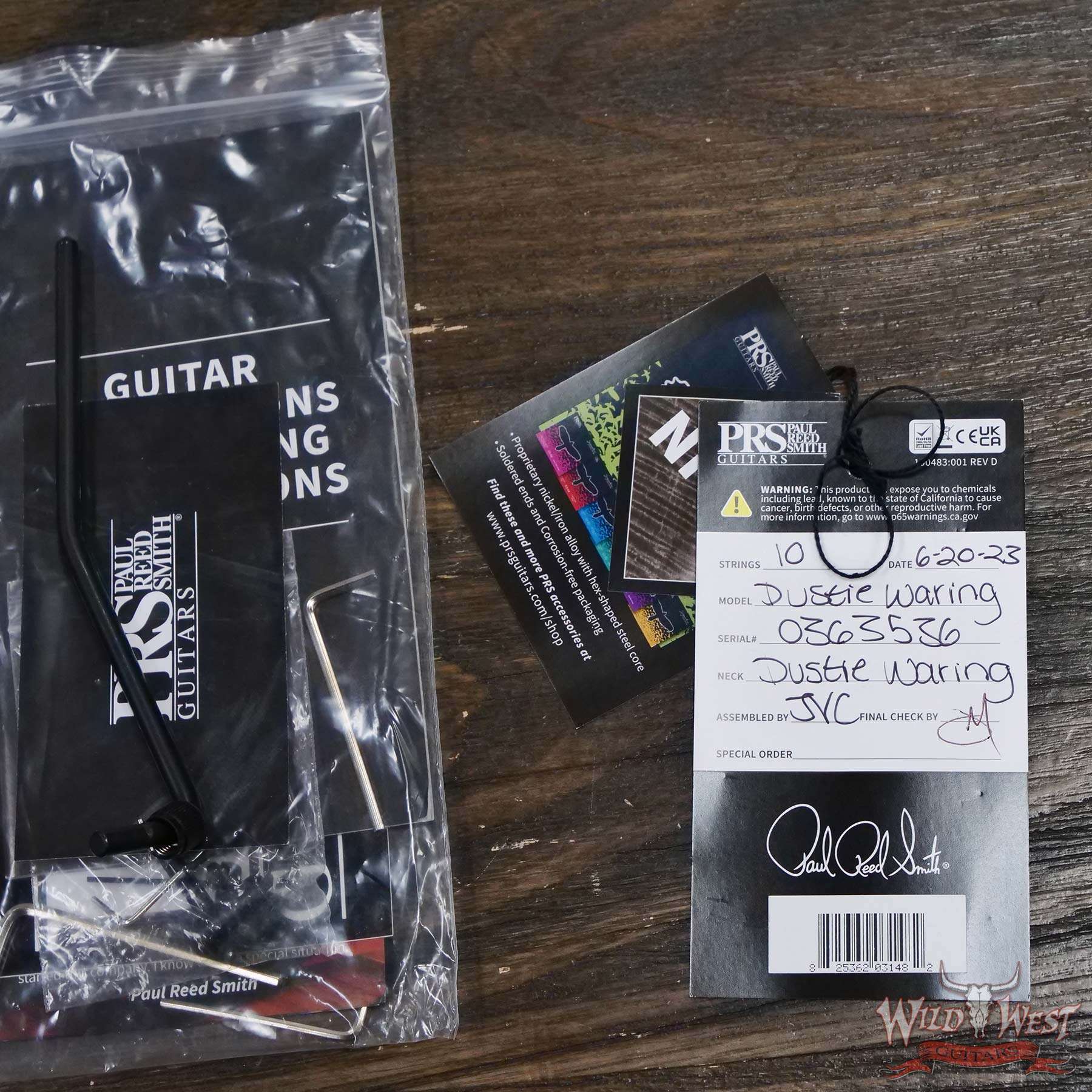 The DW CE 24 “Floyd” model starts with the PRS CE bolt-on platform and includes a satin-finished maple neck, maple fretboard, a slightly modified Pattern Thin neck carve (Waring’s carve is slightly thinner front to back), and Floyd Rose tremolo system. The pickups and electronics are also unique to Waring’s signature axe. The pickups are Waring’s signature Mojotone Dustie Waring Gen 2 Tomahawk pickups. Made with superior quality Alnico 5 magnets and a special winding technique, Mojotone Dustie Waring Gen 2 Tomahawks have plenty of output and big bottom end while remaining articulate and clear – a unique quality for high-gain pickups. Paired with a volume and tone control and 5-way blade pickup selector that have been shifted slightly to allow plenty of room to work the tremolo, the DW CE 24 “Floyd” is comfortable, fun, and inspiring to play. The DW CE 24 “Floyd” comes with satin black hardware and is available in multiple color options, including Waring’s signature finish: Waring Burst.