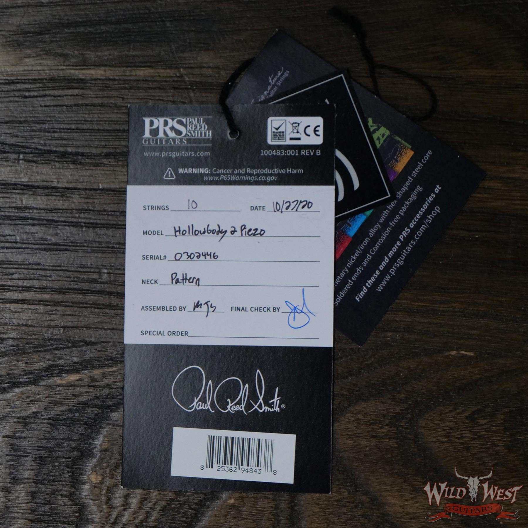 The LR Baggs/PRS Piezo System comes standard, providing musicians with the versatility of wielding both acoustic and electric guitar tones in one instrument. There are two output jacks on the Hollowbody II, allowing guitarists to plug into their favorite electric guitar or acoustic guitar amp or DI into a soundboard. By utilizing the separate blend control, the tone of the Hollowbody II’s 58/15 LT pickups can also be combined with acoustic sounds through a single output.