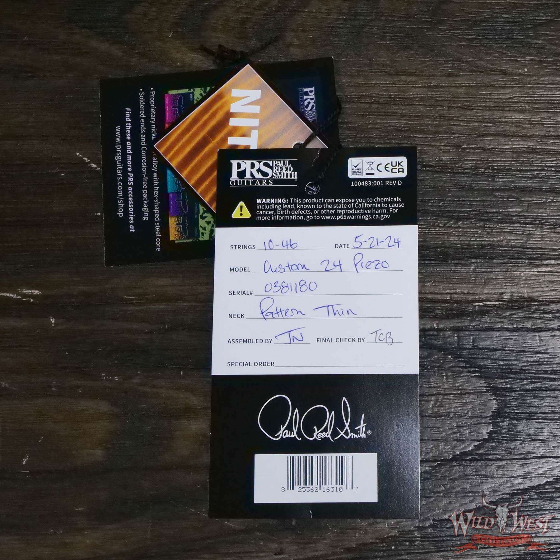 The Custom 24 Piezo is a 24-fret solidbody piezo-equipped guitar that effortlessly achieves classic humbucker tones and authentic acoustic sounds in one instrument. The added versatility of PRS’s patented Gen III tremolo gives musicians a new and unique tool to add to their lineup.