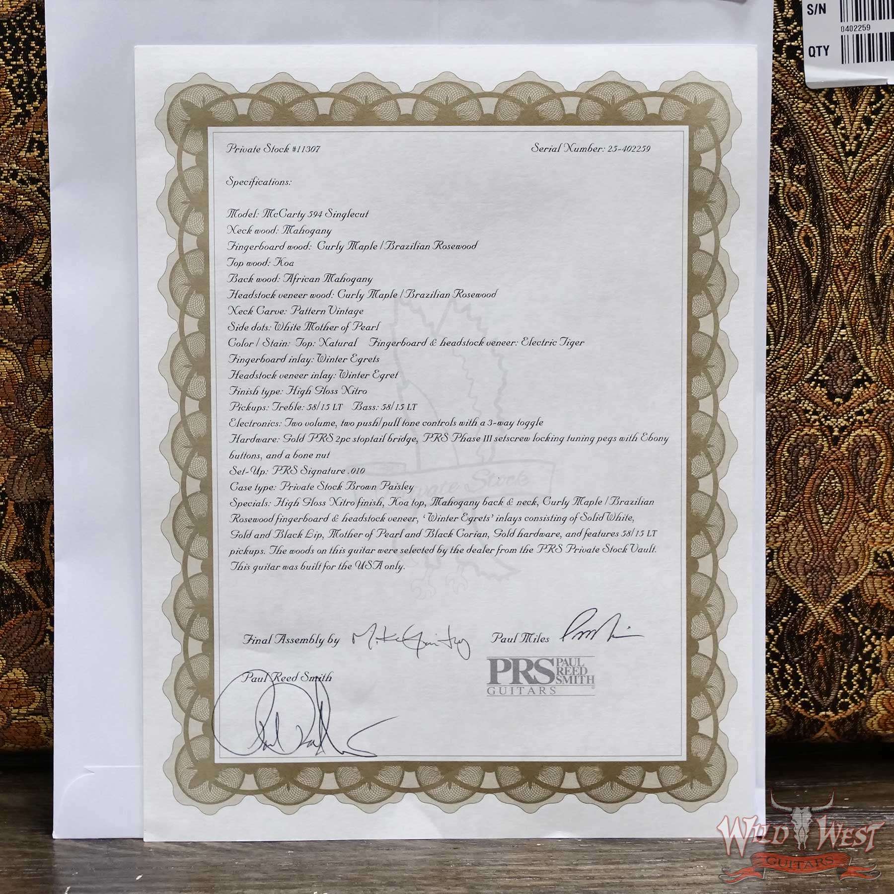 Paul Reed Smith PRS Private Stock #11307 McCarty 594 Singlecut Koa Top Semi-Hollow Winter Egrets Inlays 7.20 LBS