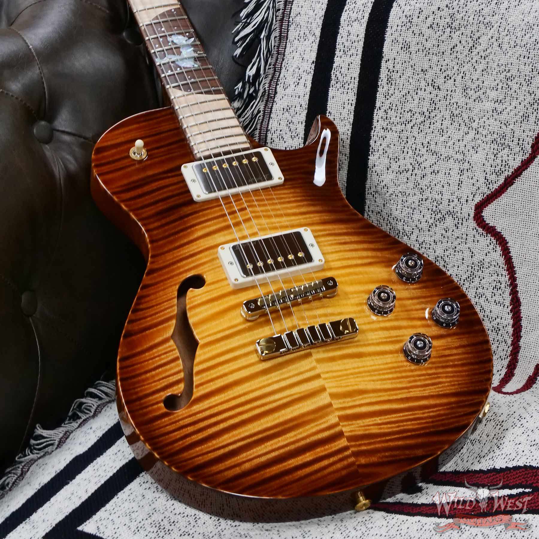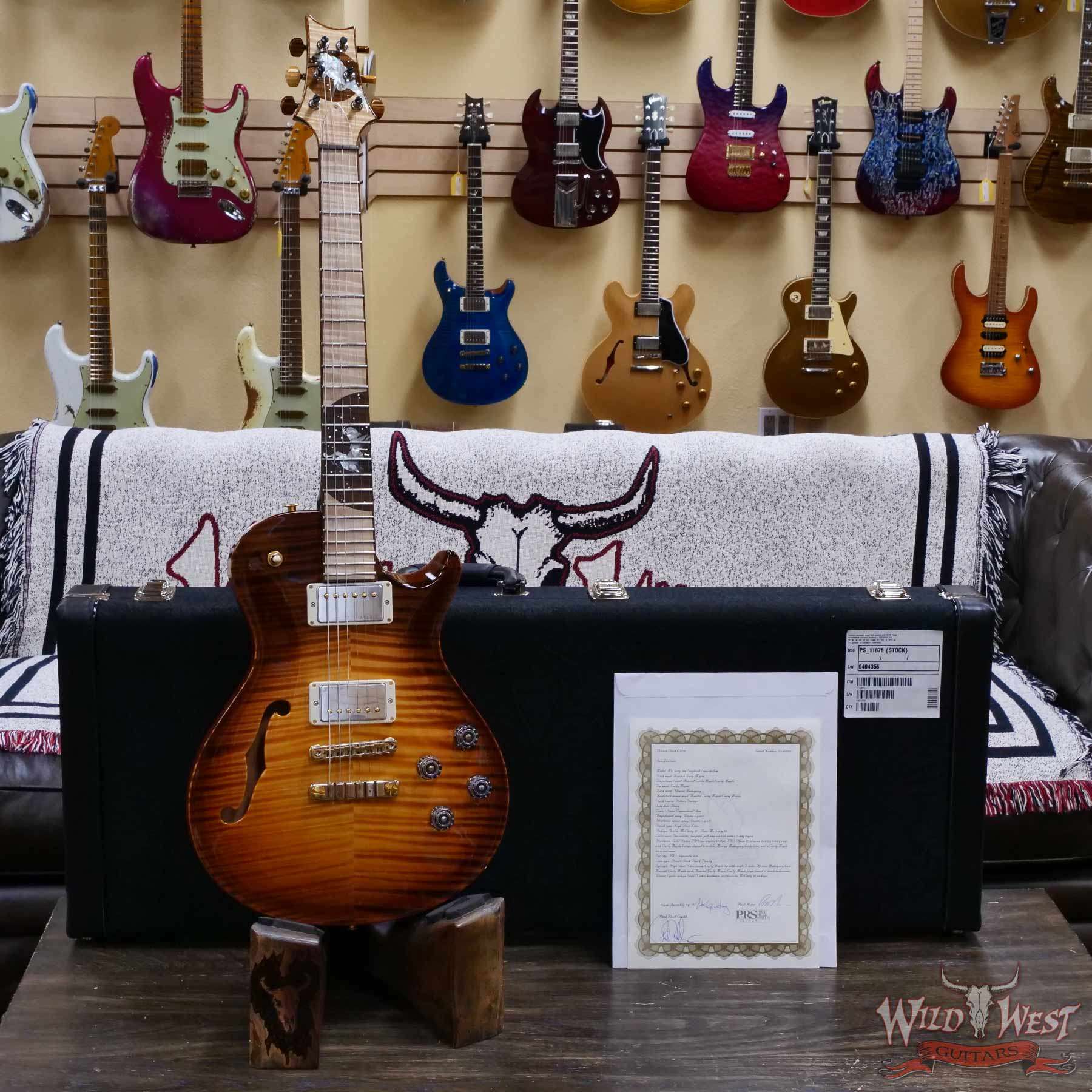 This PRS Private Stock #11878 McCarty 594 Singlecut Semi-Hollow is a stunning showcase of tonewood artistry and high-end craftsmanship. Built with a Curly Maple top and African Mahogany back, it delivers a warm, resonant voice enhanced by its semi-hollow construction and a single f-hole.