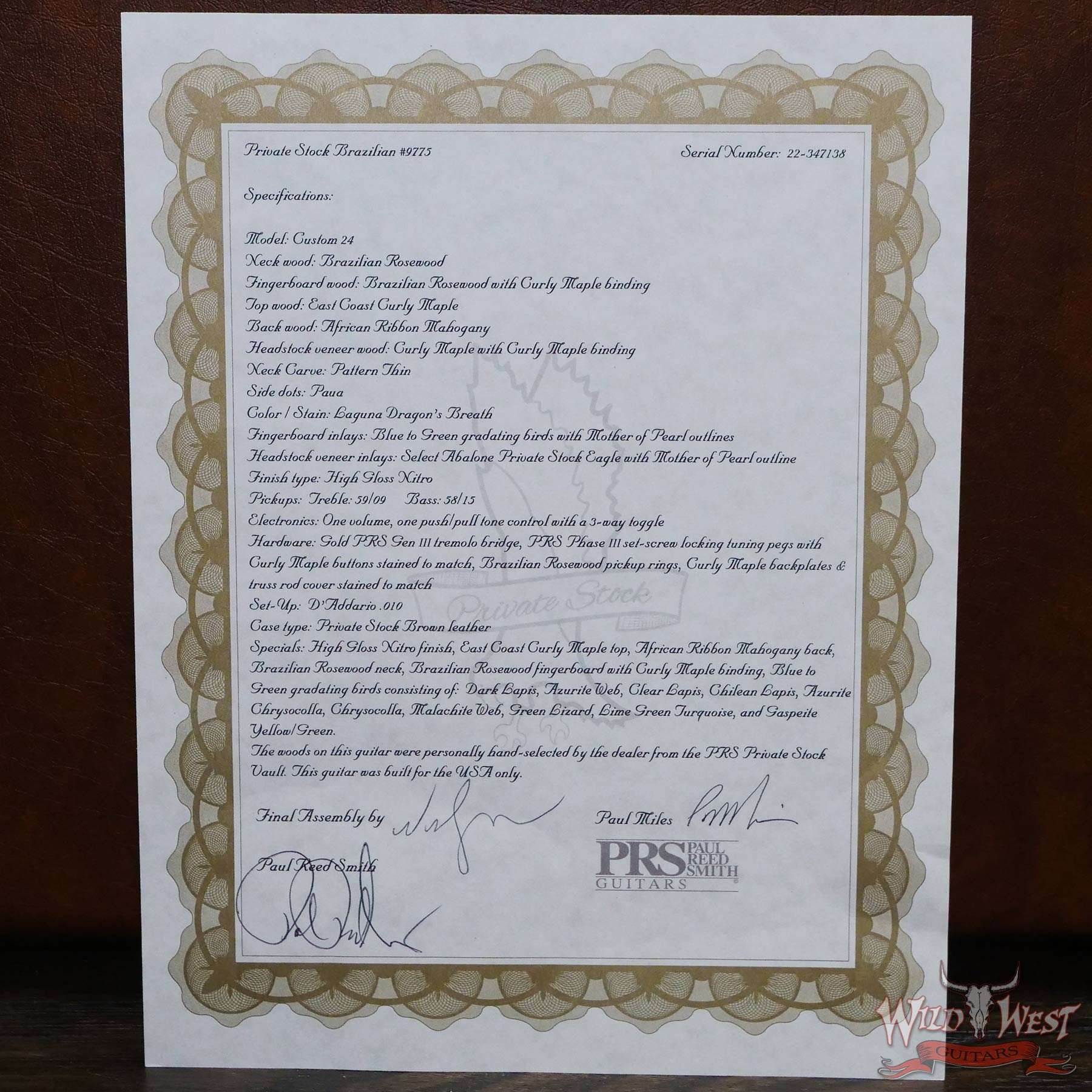 Paul Reed Smith PRS Private Stock #9775 Custom 24 Brazilian Rosewood Neck & Board Laguna Dragon’s Breath