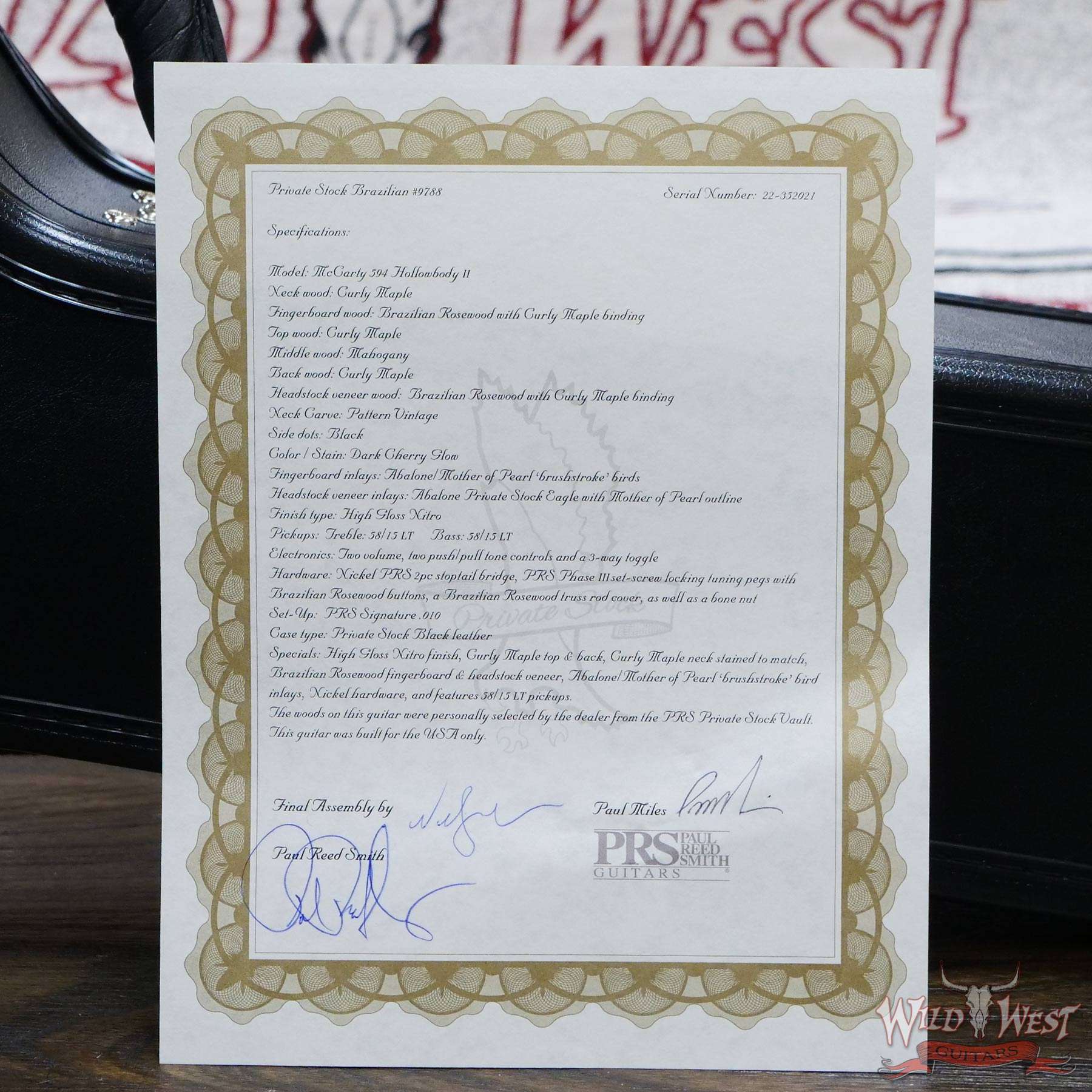 Paul Reed Smith PRS Private Stock #9788 McCarty 594 Hollowbody II Flame Maple Neck Brazilian Rosewood Board Dark Cherry Glow
