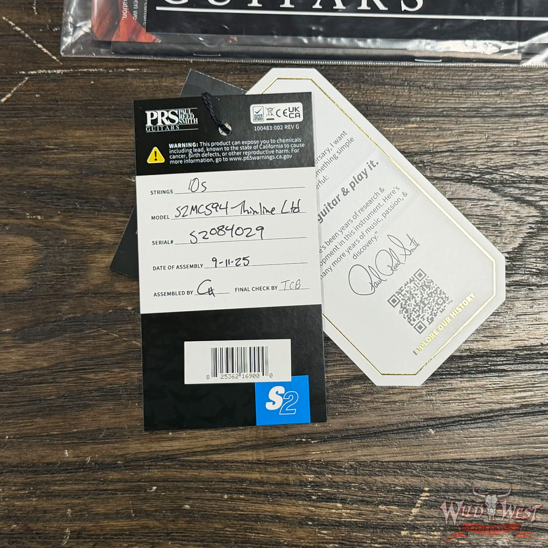 The S2 McCarty 594 Thinline is an all-mahogany, thin-body guitar with a powerful voice. Whether you are looking for authentic humbucking tones or nuanced, sweet single-coil sounds, the S2 McCarty 594 Thinline can seamlessly master both sonic territories thanks to its Maryland, USA-made PRS 58/15 LT pickups and dual volume and push/pull tone controls.