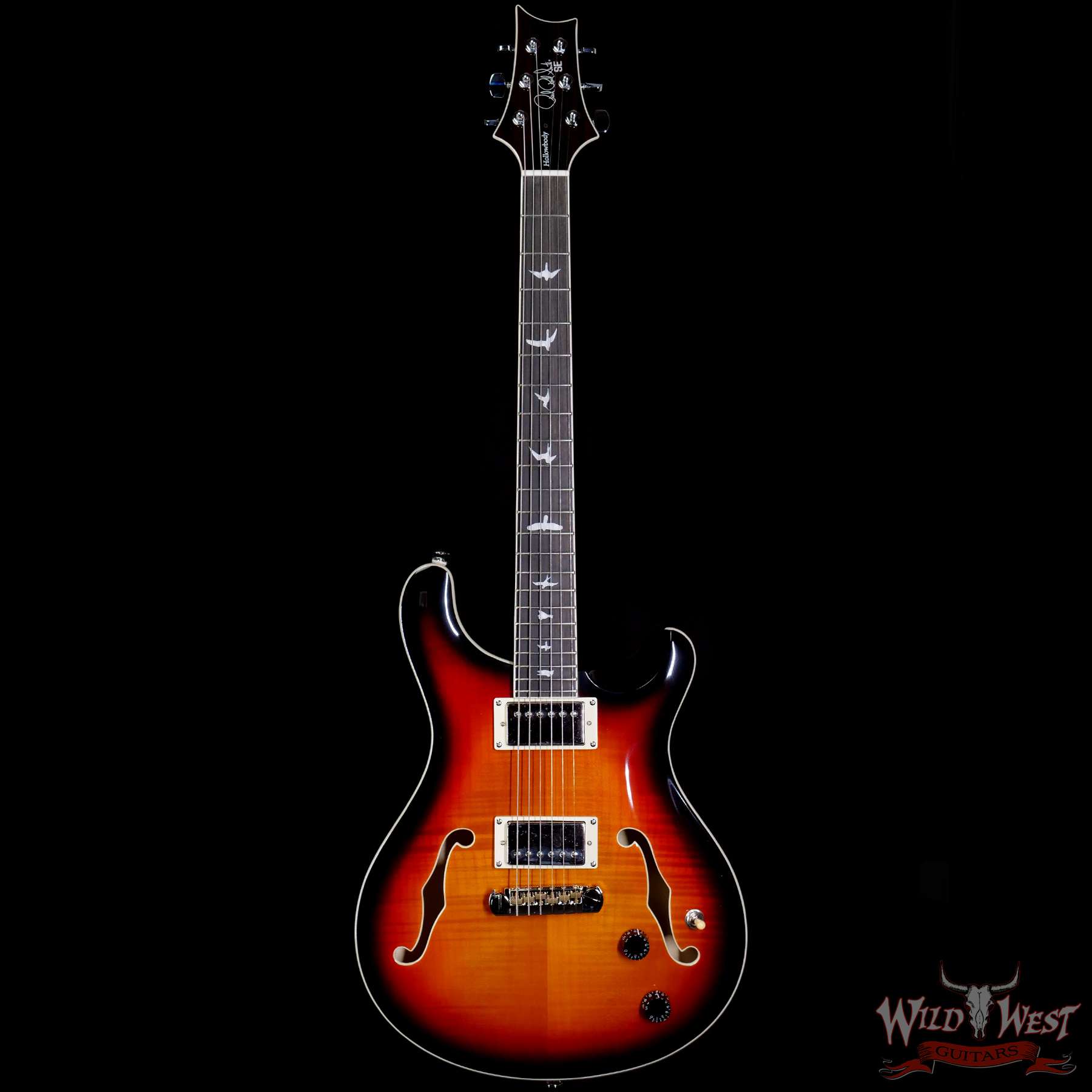 The SE Hollowbody II combines the power and stability of a solid-body electric guitar with the captivating resonance of a hollowbody instrument. The 58/15 “S” pickups deliver clarity and balance that sound big and musical in the hollowbody platform. Designed to look as good as it sounds, the SE Hollowbody II also features a figured maple top and back and mahogany sides as well as a mahogany neck (set-neck construction) with PRS trademark bird inlays. Both hollowbody and solidbody players will feel at home with the SE Hollowbody II.