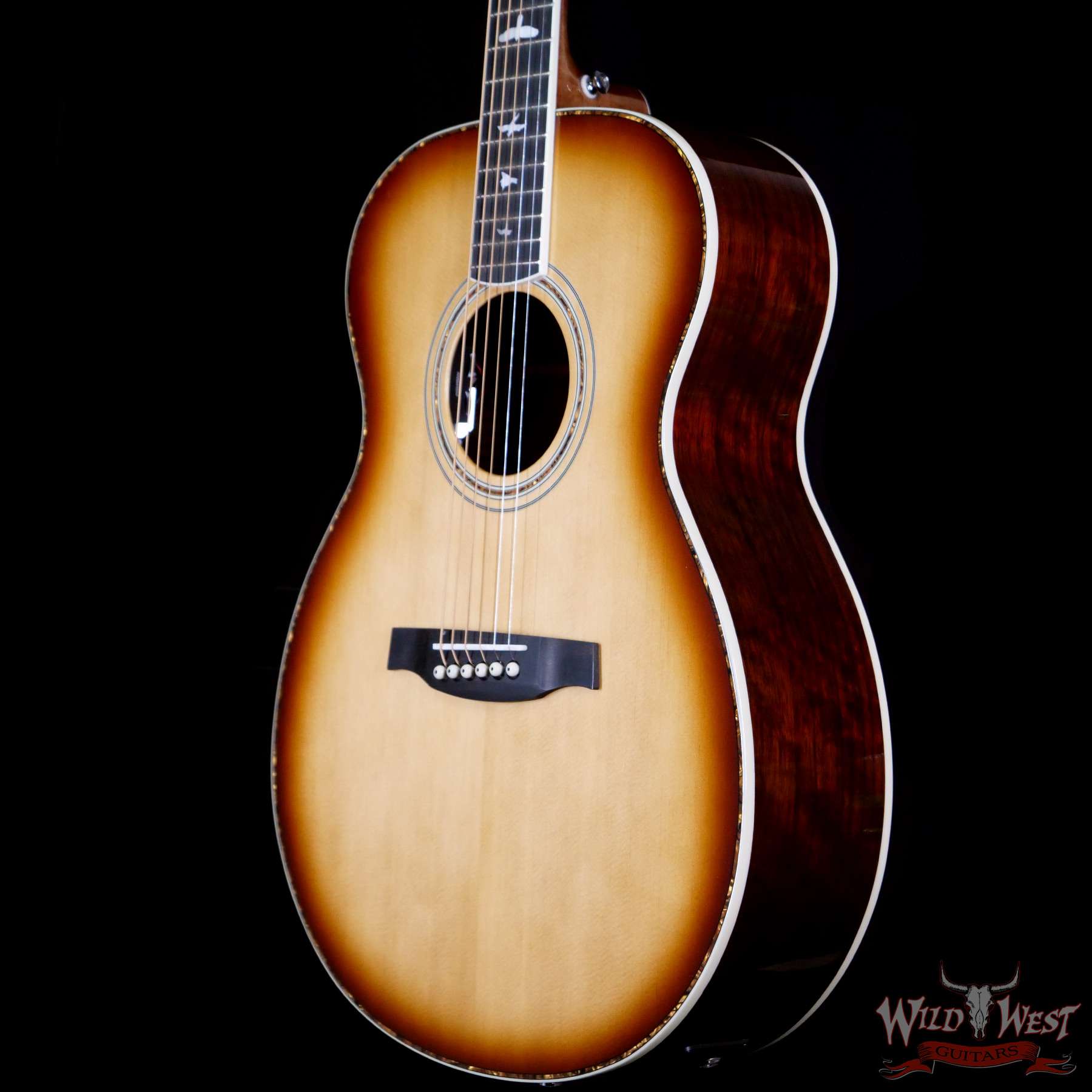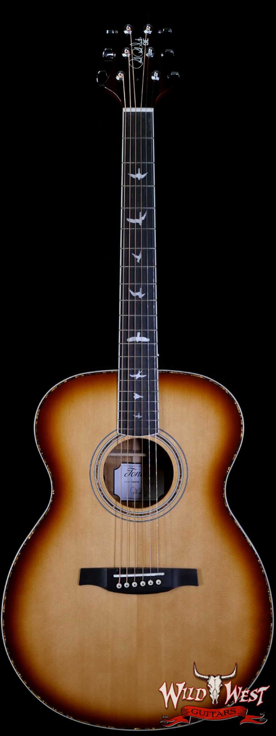 Additional high-quality features include a solid spruce top, ebony fretboard and bridge, bone nut and saddle, as well as PRS trademark bird inlays and headstock design. Ships with a high-quality hardshell case.