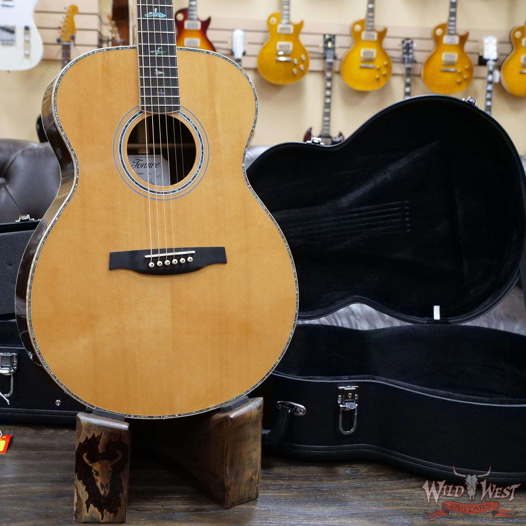 The PRS SE T60E pairs ziricote back and sides with a solid spruce top. The tone favors a full bottom end with rolled-off highs reminiscent of some vintage acoustic guitars. When matched with PRS hybrid“X”/ Classical bracing, which allows the top to freely vibrate, the SE T60E’s voice projects with breathtaking volume and delicate nuance. The Tonare Grand body shape delivers a familiar feel and a thunderous tone, well suited for picking and fingerstyle playing.
