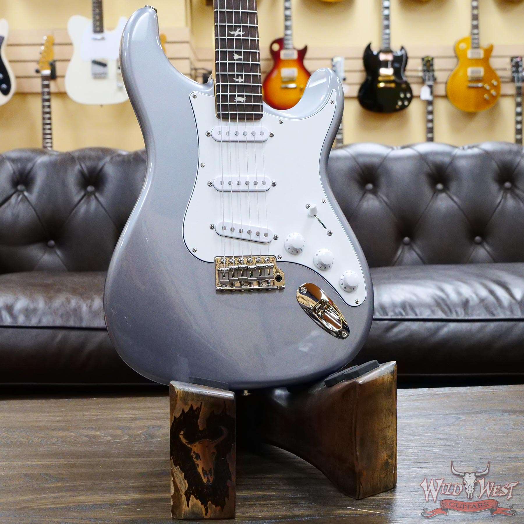The Silver Sky comes in four colors with distinctive accents on PRS’s trademark lower horn scoop.