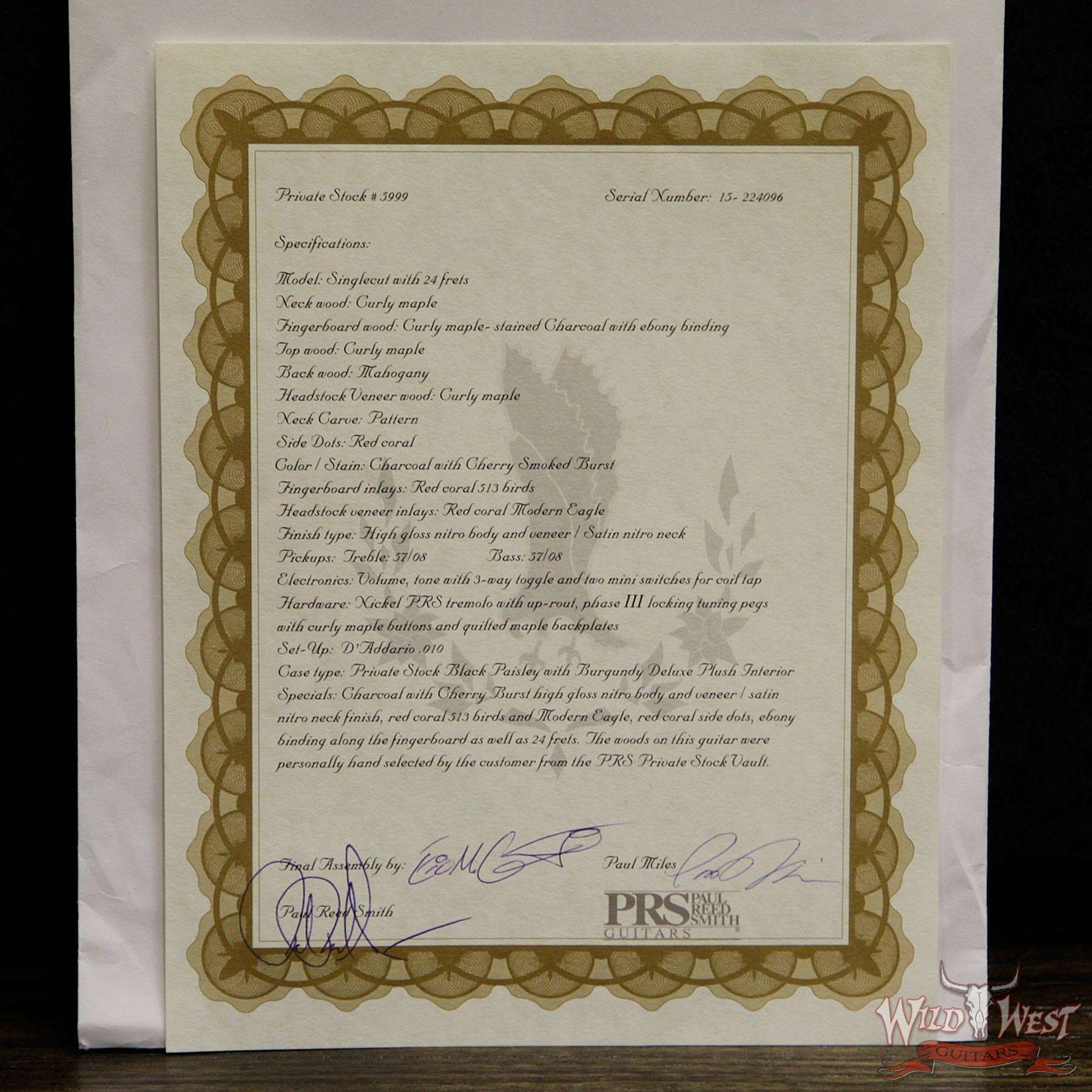 Paul Reed Smith PRS Private Stock #5999 Singlecut 24 Frets Flame Maple Top Neck & Board Charcoal Cherry Burst