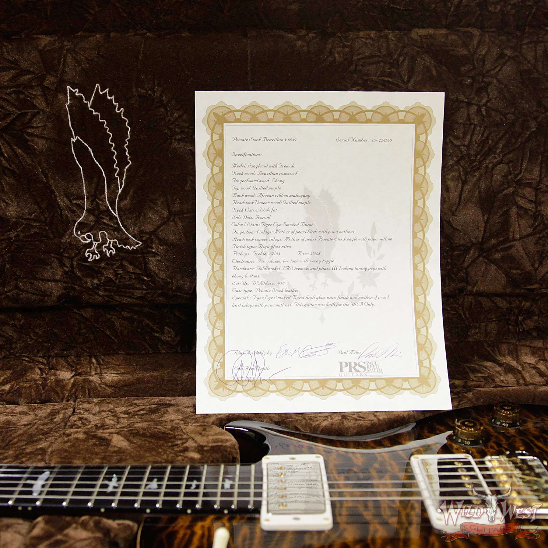 2015 Paul Reed Smith PRS Private Stock 6049 Singlecut Tremolo Brazilian Rosewood Neck Ebony Board Tiger Eye Smoked Burst
