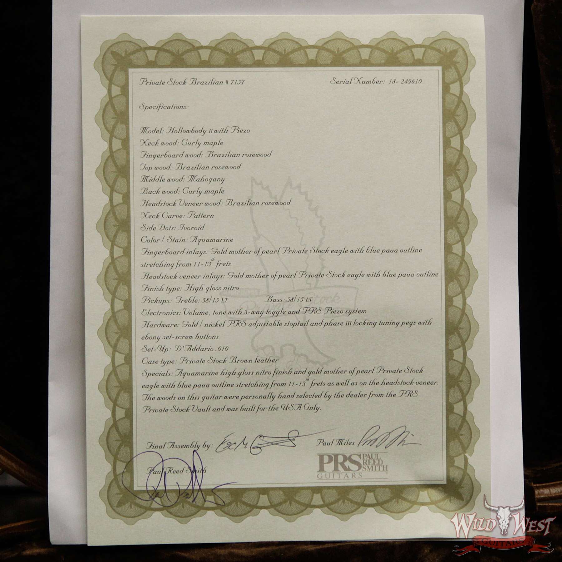 PRS Private Stock #7157 Hollowbody II HBII Brazilian Rosewood Top & Board Flame Maple Back and Neck Aquamarine