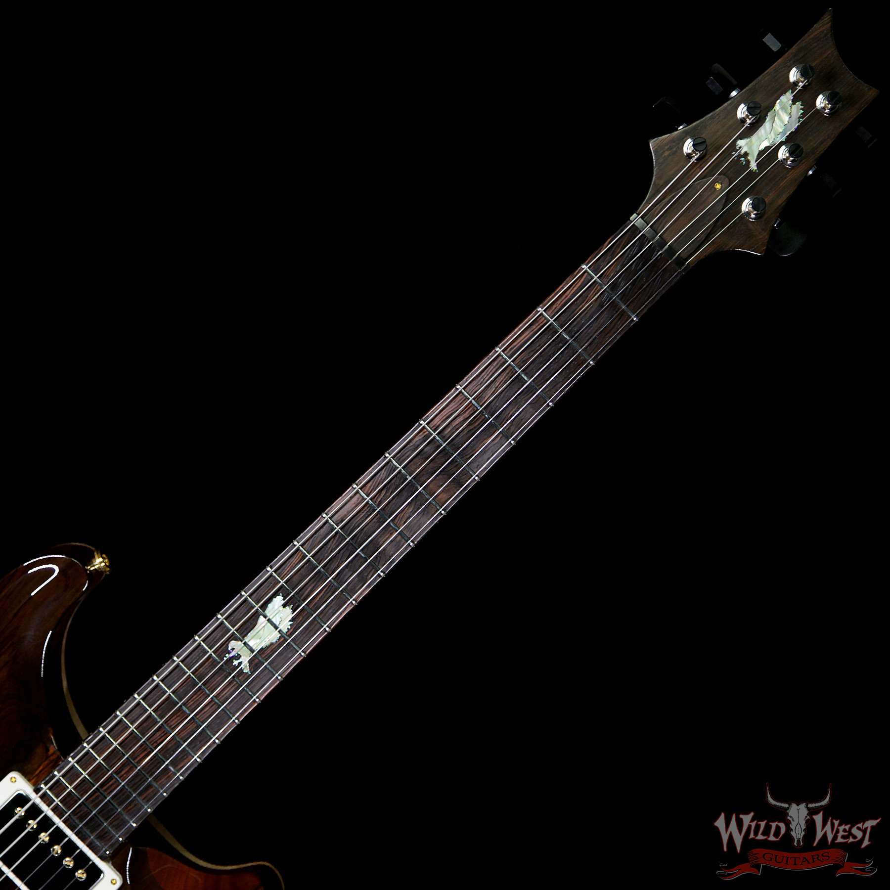 Headstock Brazilian Rosewood Veneer Gold Mother Of Pearl Private Stock Eagle with Blue Paua Outline on 12th Fret and Headstock