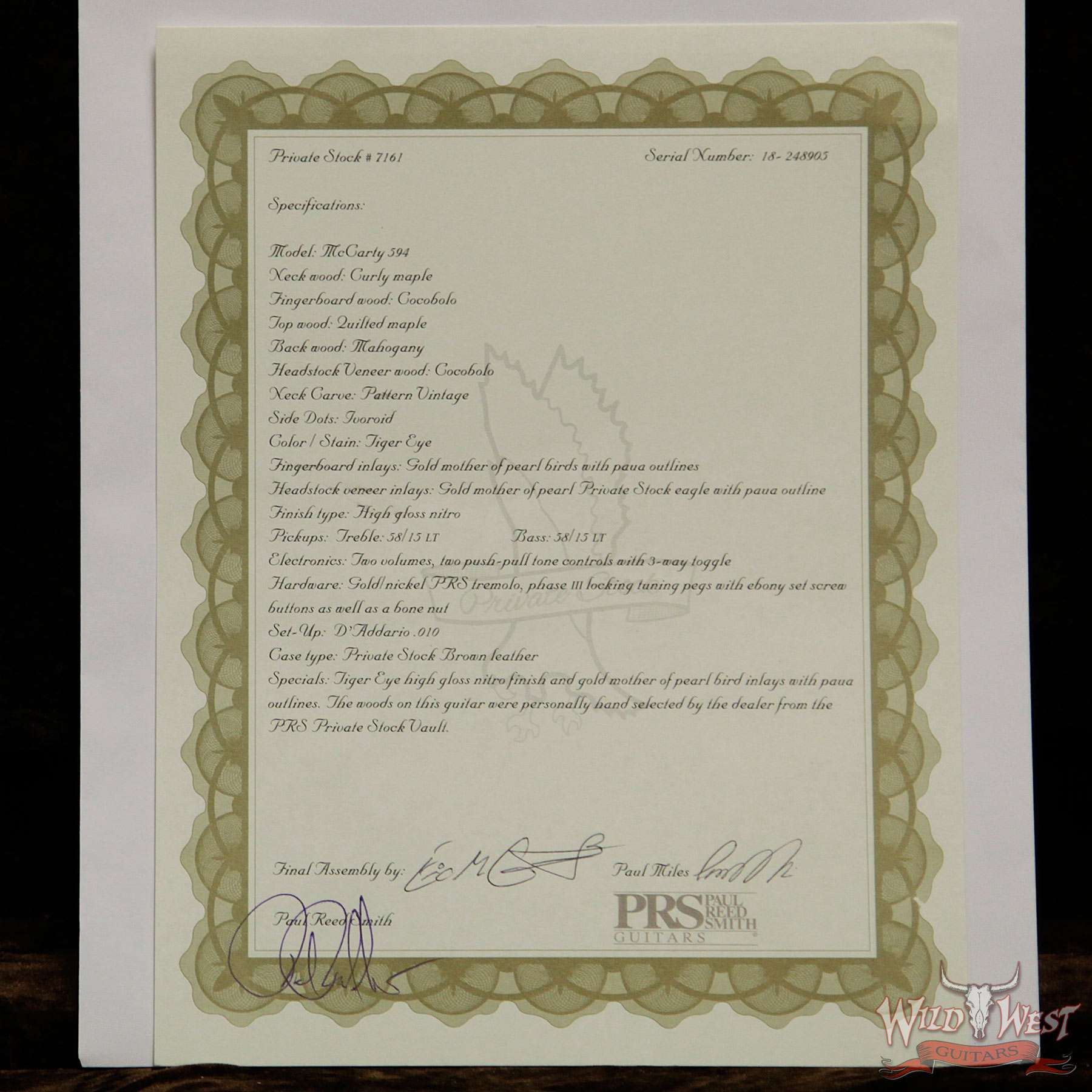 Paul Reed Smith PRS Private Stock #7161 McCarty 594 Trem Quilt Top Flame Neck Cocobolo Fretboard Tiger Eye