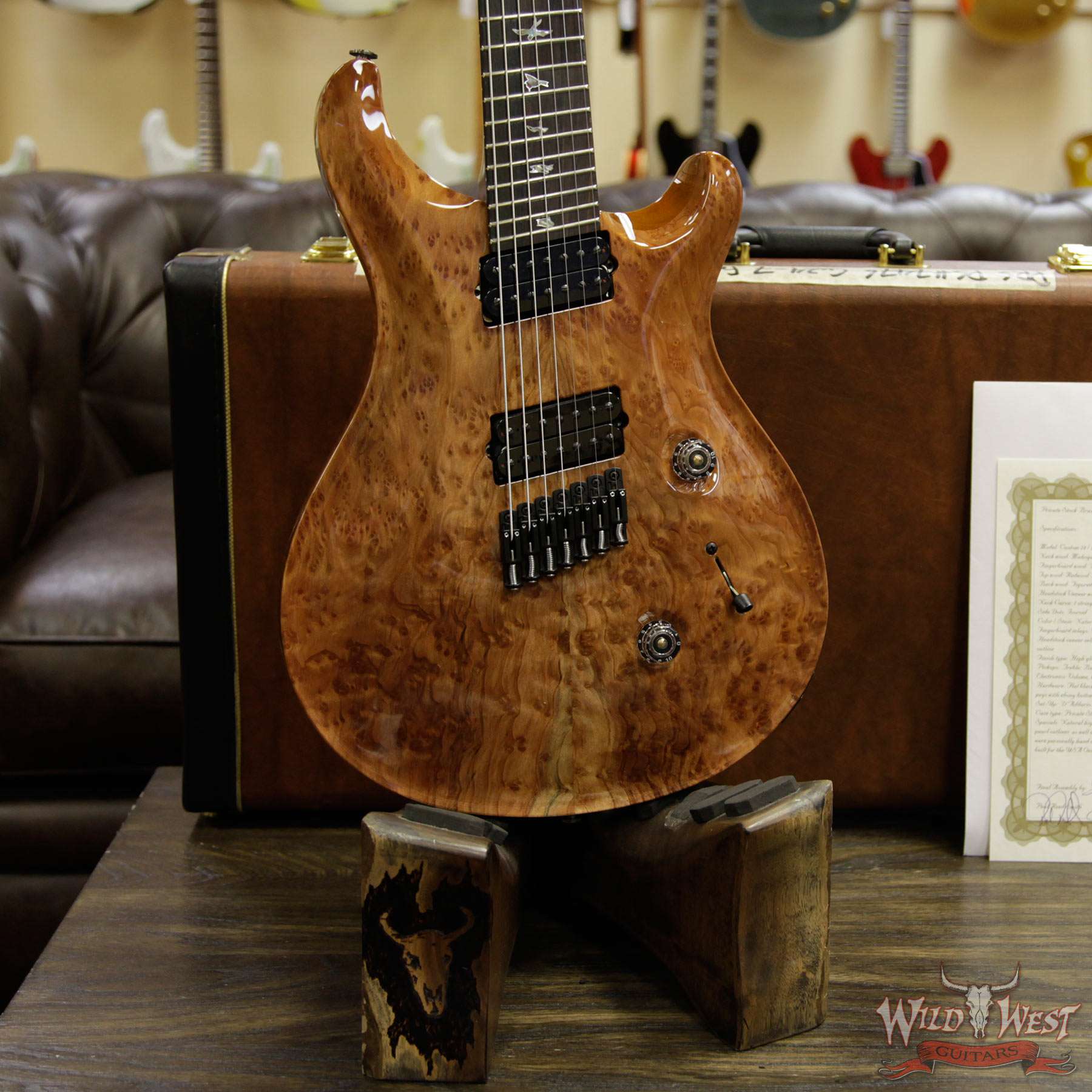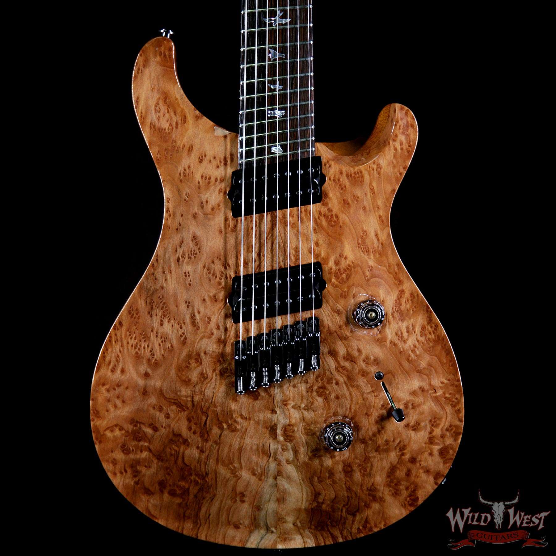 PRS Private Stock #7476 Custom 24 7-String Fanned Fret Redwood Burl Top Brazilian Rosewood Board Natural