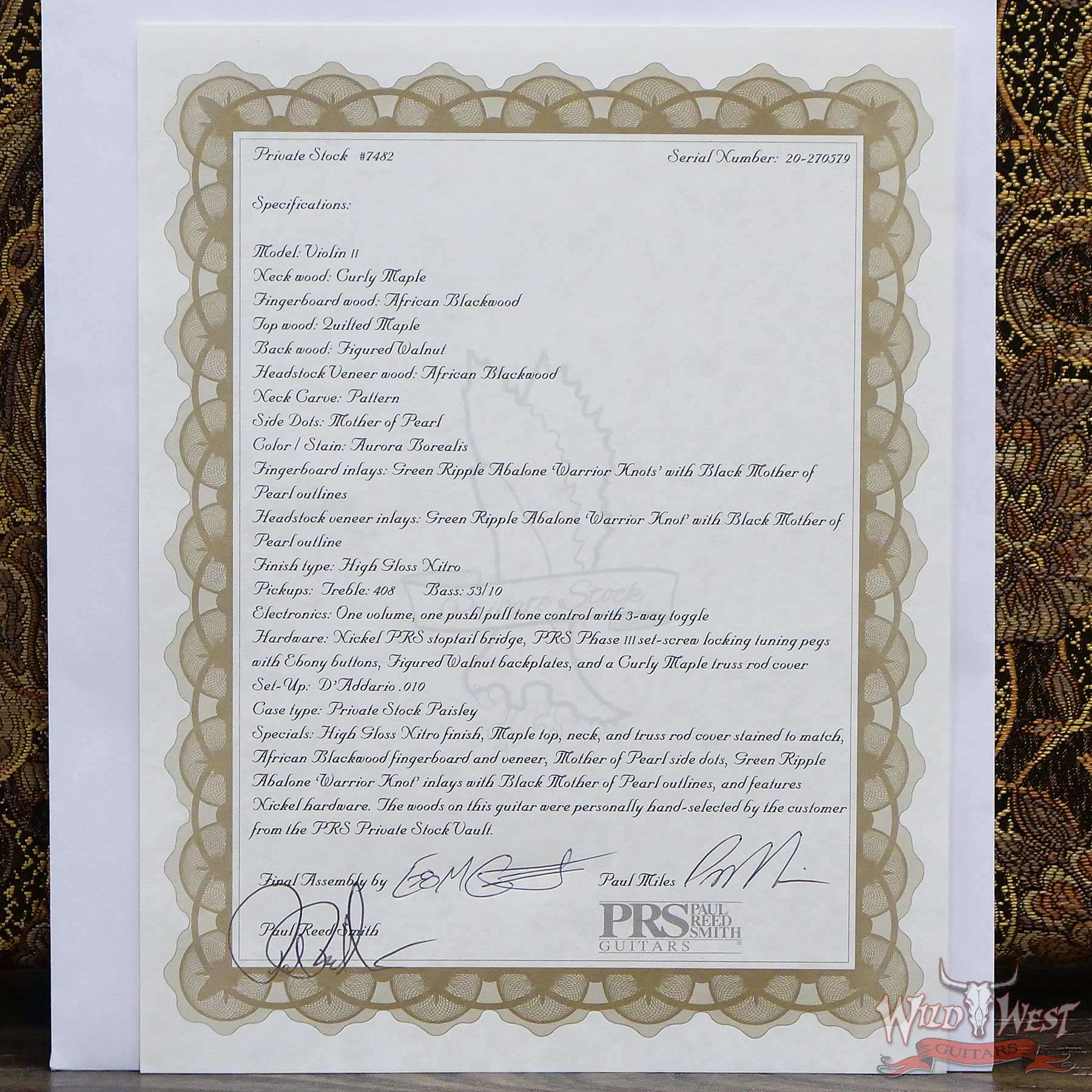 Model | PRS Private Stock #7482 “Warrior Knots” Violin II Aurora Borealis |