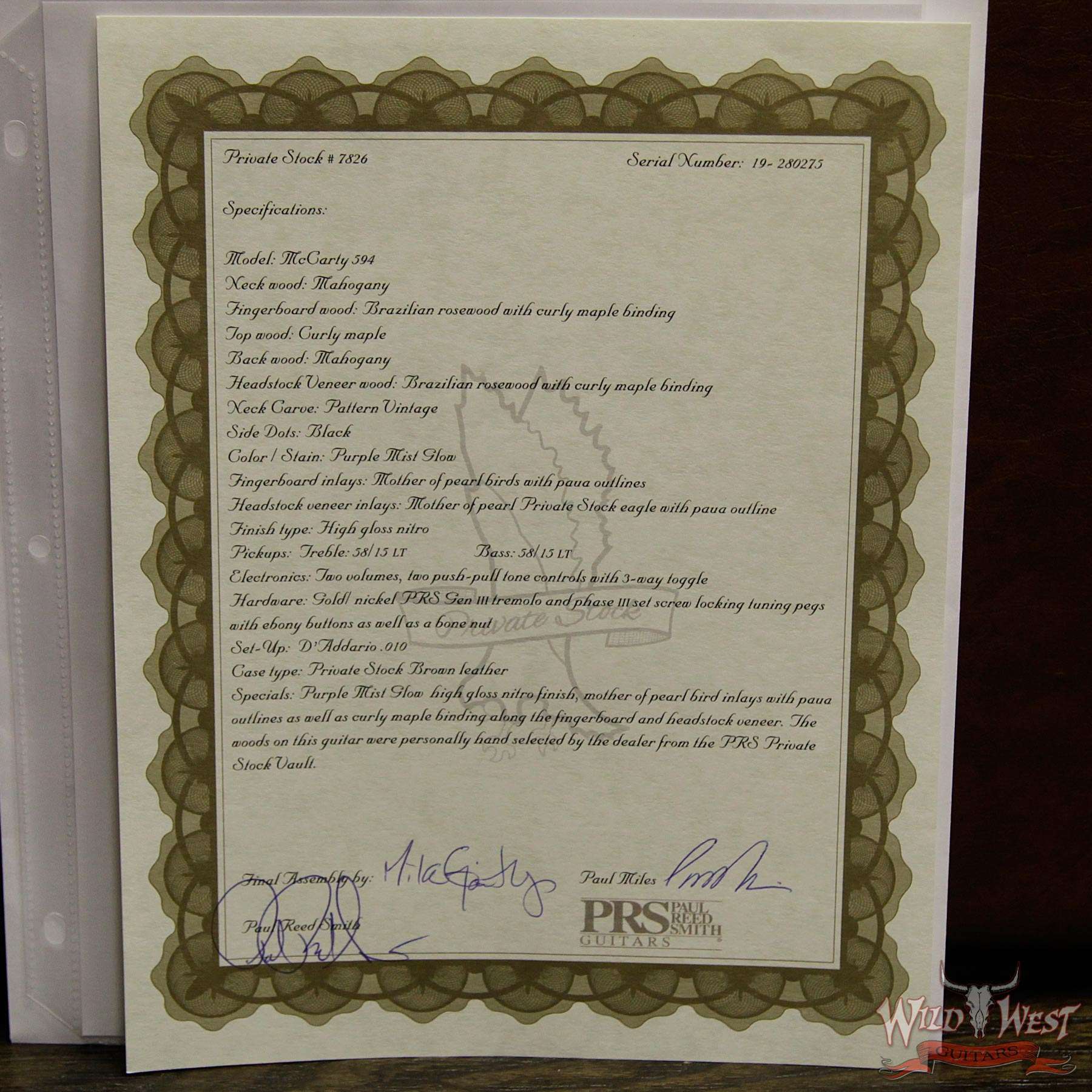 PRS Private Stock # 7826 McCarty 594 Trem Flame Top Brazilian Rosewood Board Purple Mist Glow