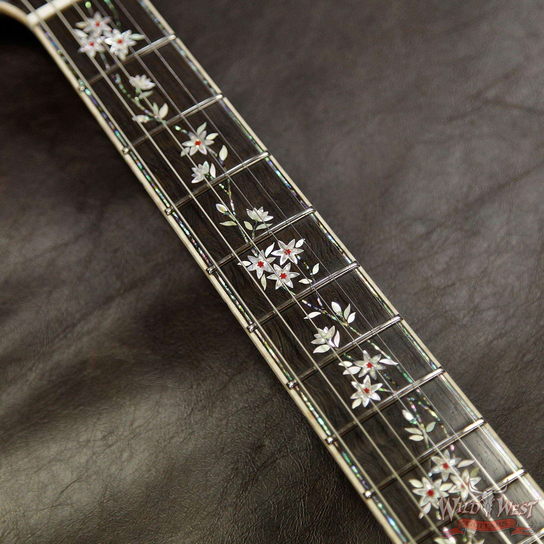Headstock | Agoya Private Stock Eagle with Blue Paua Outline, Blue Paua Purfling. |