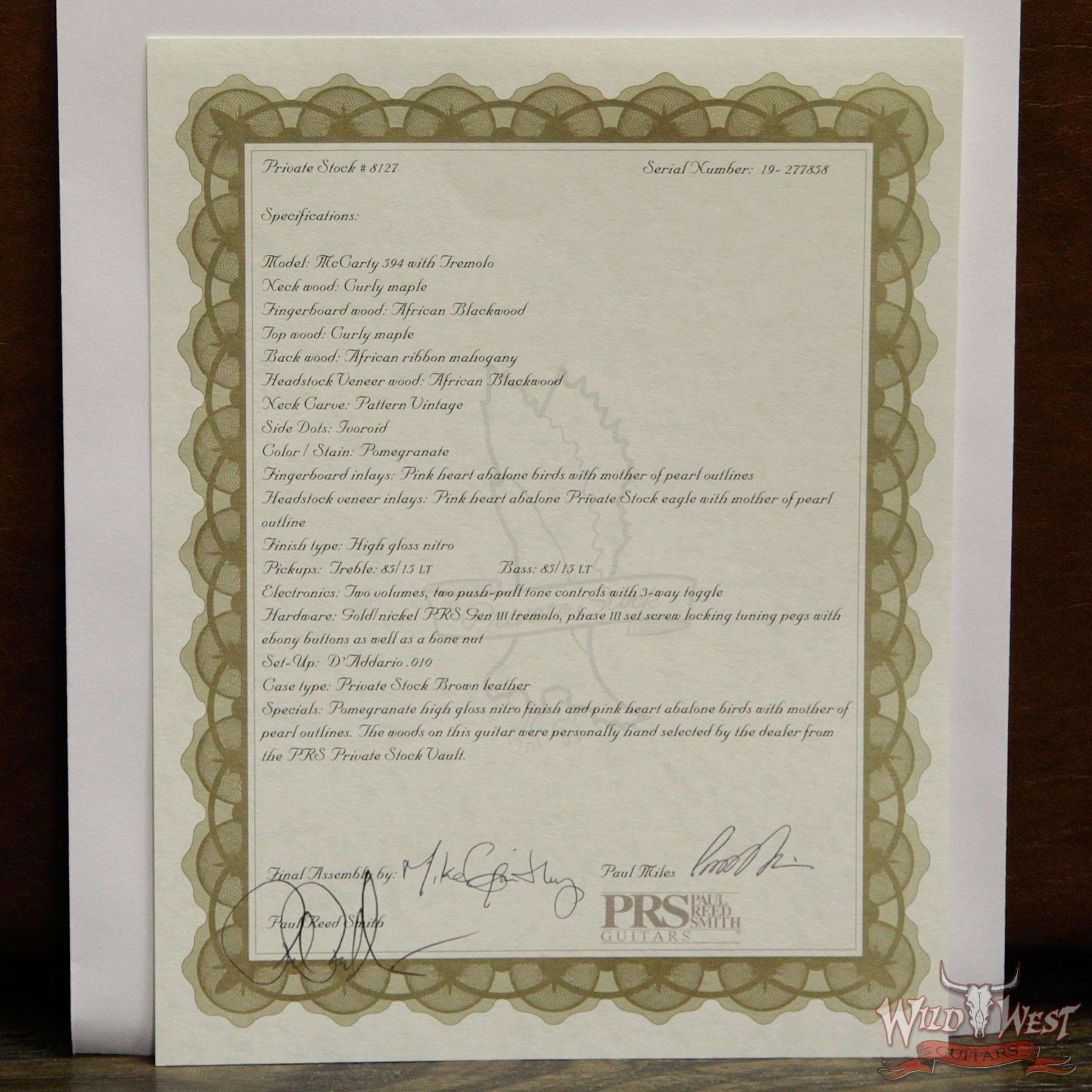 PRS Private Stock #8127 McCarty 594 Tremolo Flame Maple Neck African Blackwood Fingerboard Pomegranate