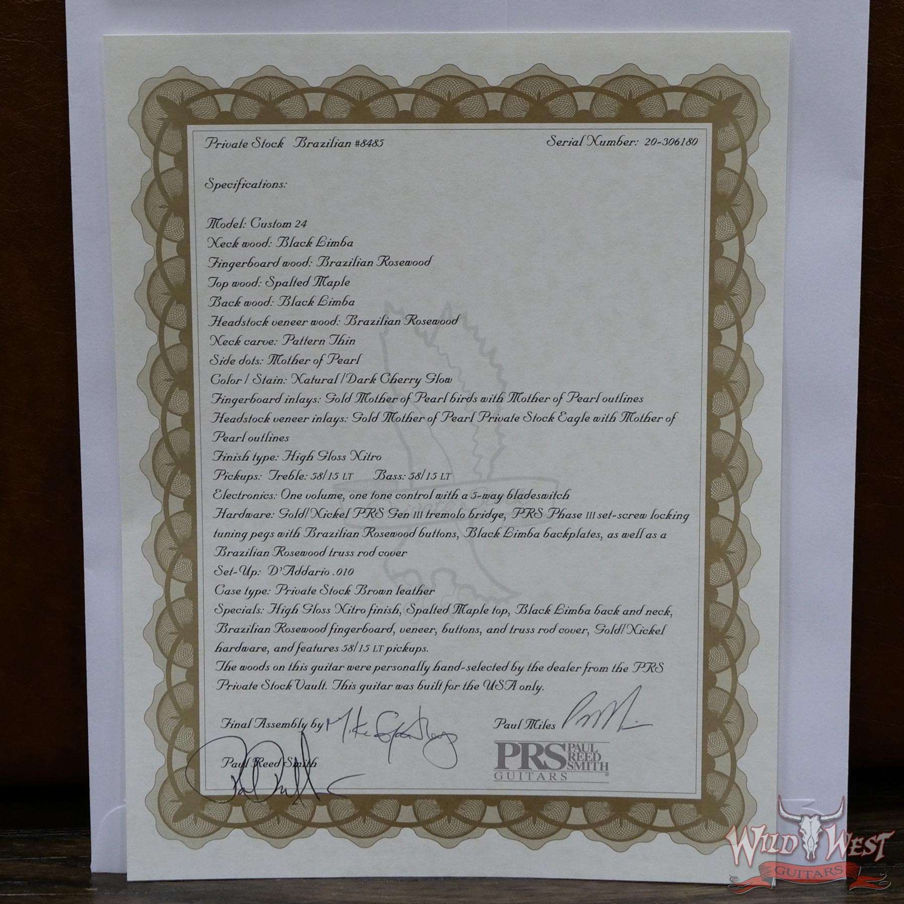 Model: PRS Private Stock #8485 Spalted Maple Custom 24 Brazilian Rosewood Board Dark Cherry Glow / Natural