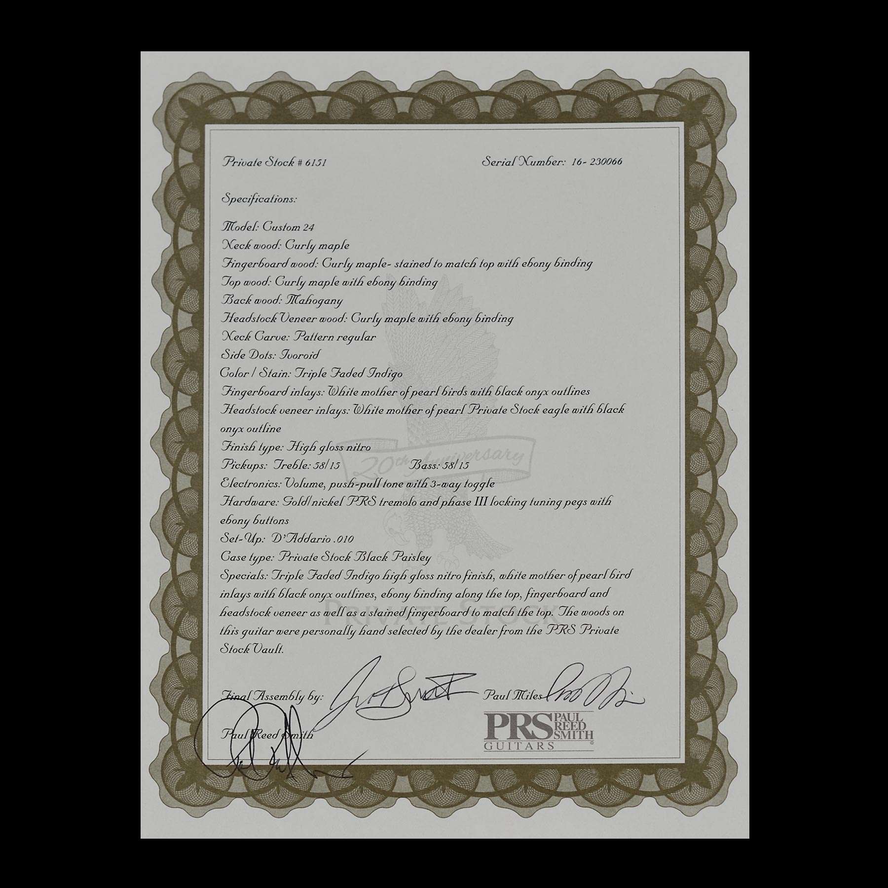 Model PRS Private Stock Custom 24 Triple Faded Indigo Stained Flame Maple Maple Fretboard