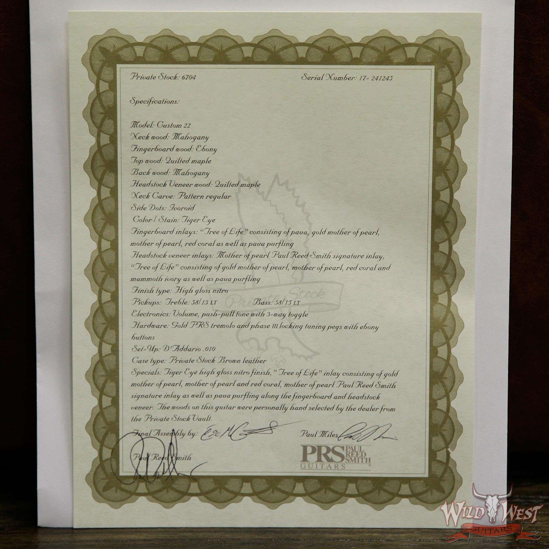 PRS Private Stock PS6704 Quilt Maple Top Custom 22 Original “Tree of Life” Inlay Tiger Eye