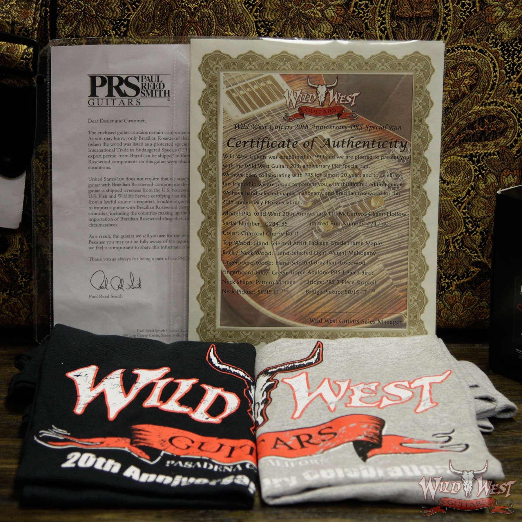 PRS Wild West Guitars 20th Anniversary Limited Run # 24 of 40 Wood Library Artist Package Semi-Hollow McCarty 594 Charcoal Cherry Burst