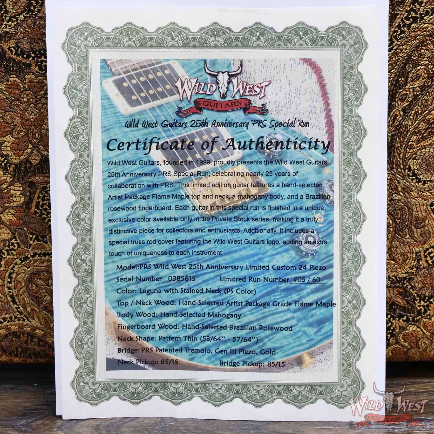 PRS Wild West Guitars 25th Anniversary Limited Run Wood Library Artist Package Custom 24 Piezo Laguna (Private Stock Color) 8.35 LBS (US Only / No International Shipping)