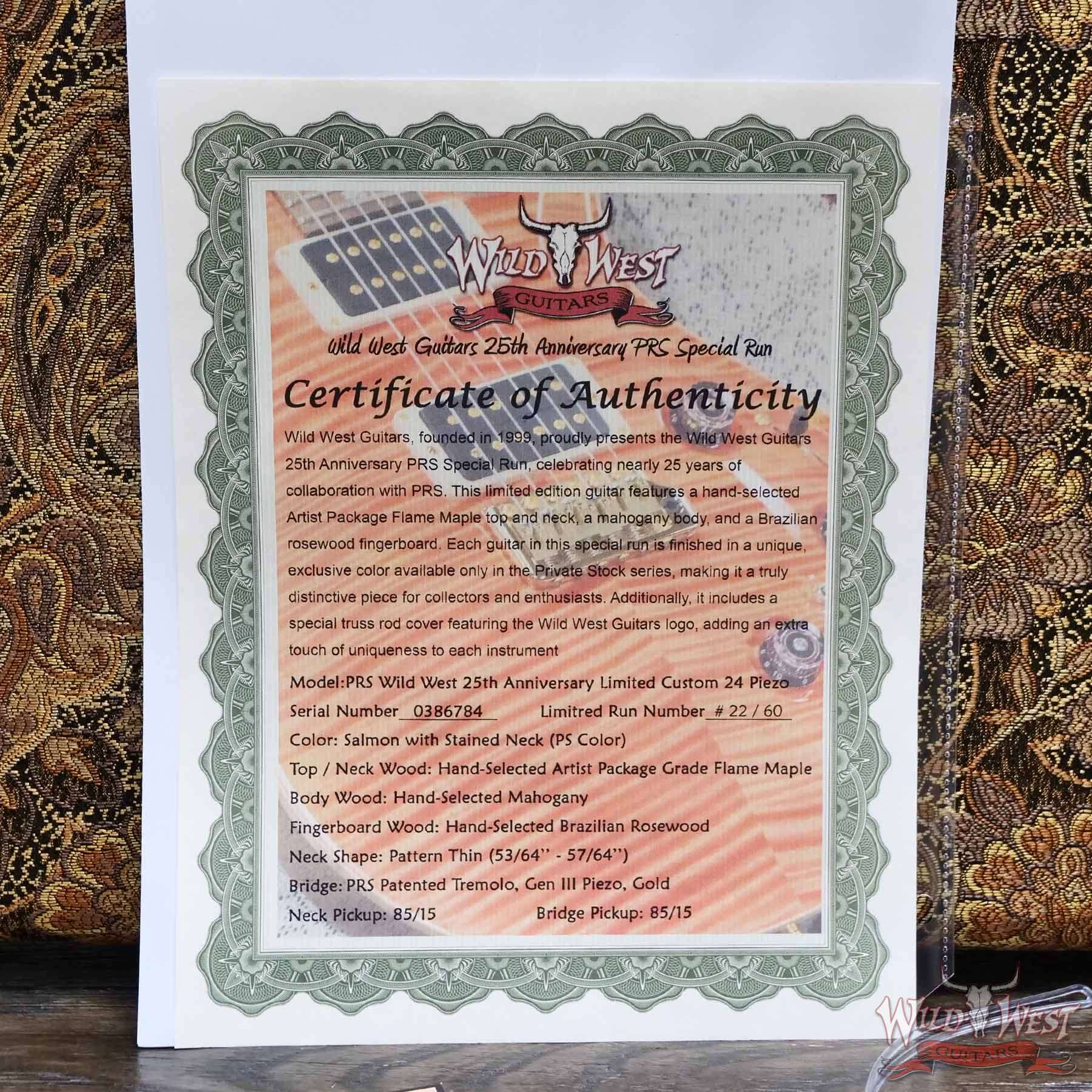 PRS Wild West Guitars 25th Anniversary Limited Run Wood Library Artist Package Custom 24 Piezo Salmon (Private Stock Color) 8.40 LBS (US Only / No International Shipping)