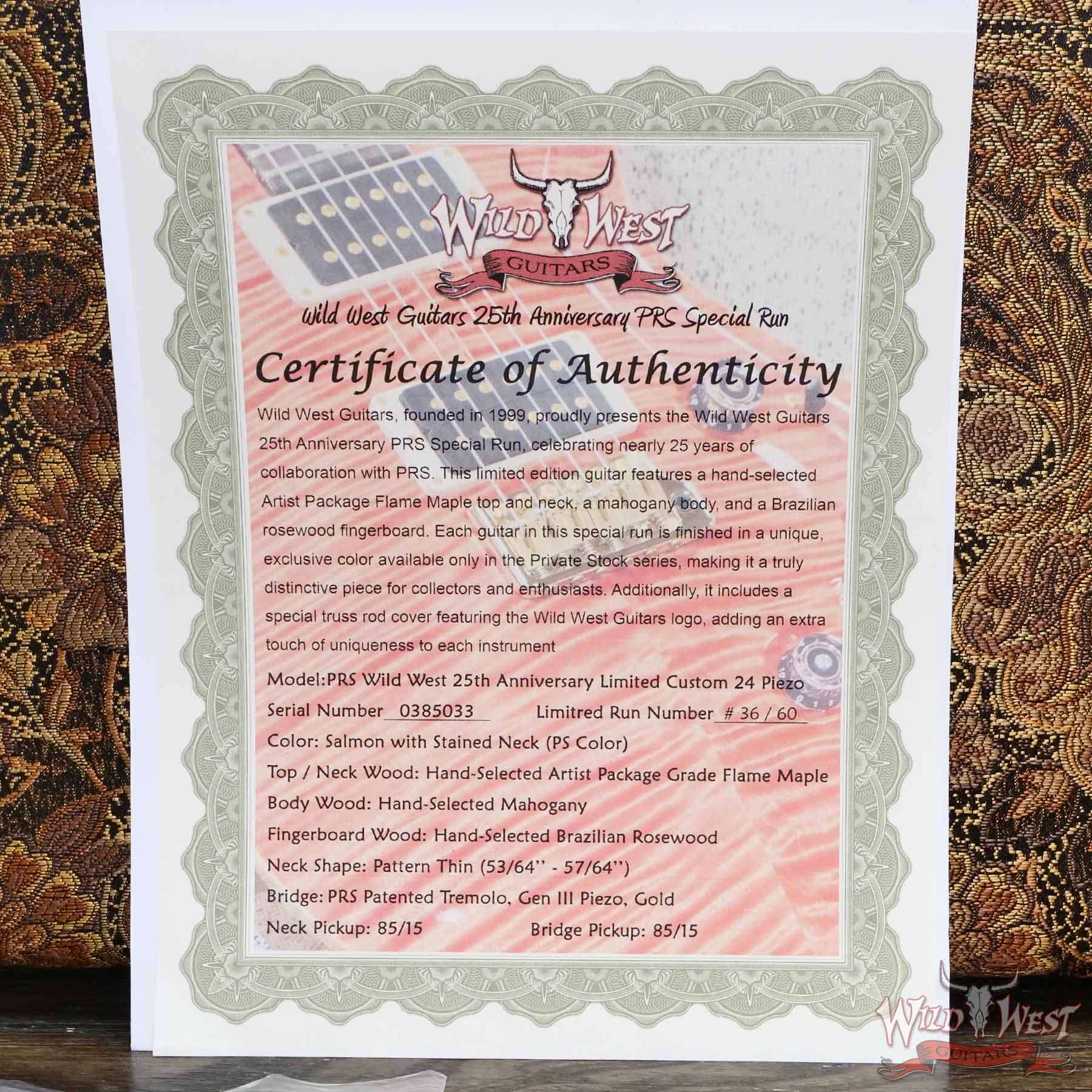 PRS Wild West Guitars 25th Anniversary Limited Run Wood Library Artist Package Custom 24 Piezo Salmon (Private Stock Color) 8.50 LBS (US Only / No International Shipping)