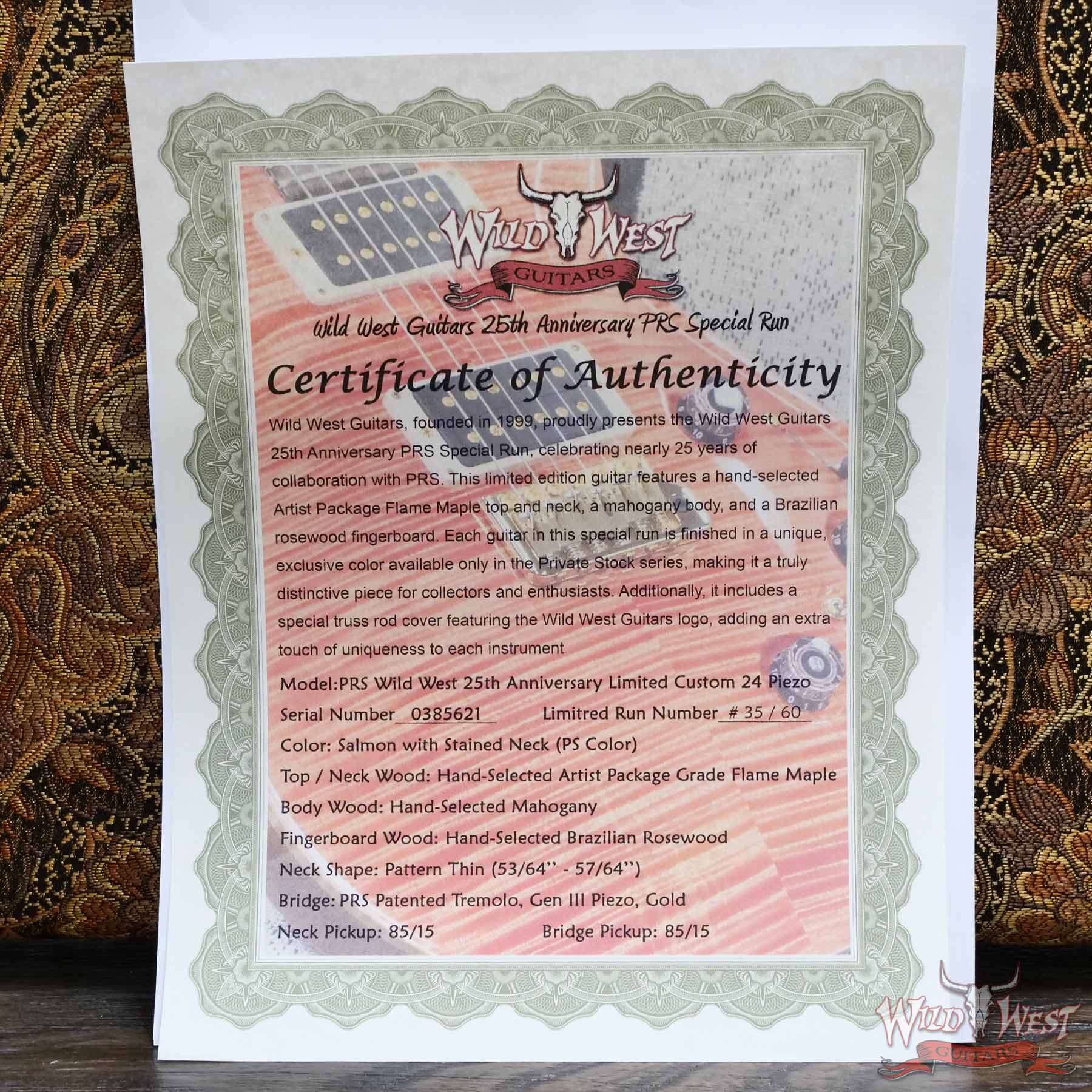 PRS Wild West Guitars 25th Anniversary Limited Run Wood Library Artist Package Custom 24 Piezo Salmon (Private Stock Color) 9.00 LBS (US Only / No International Shipping)