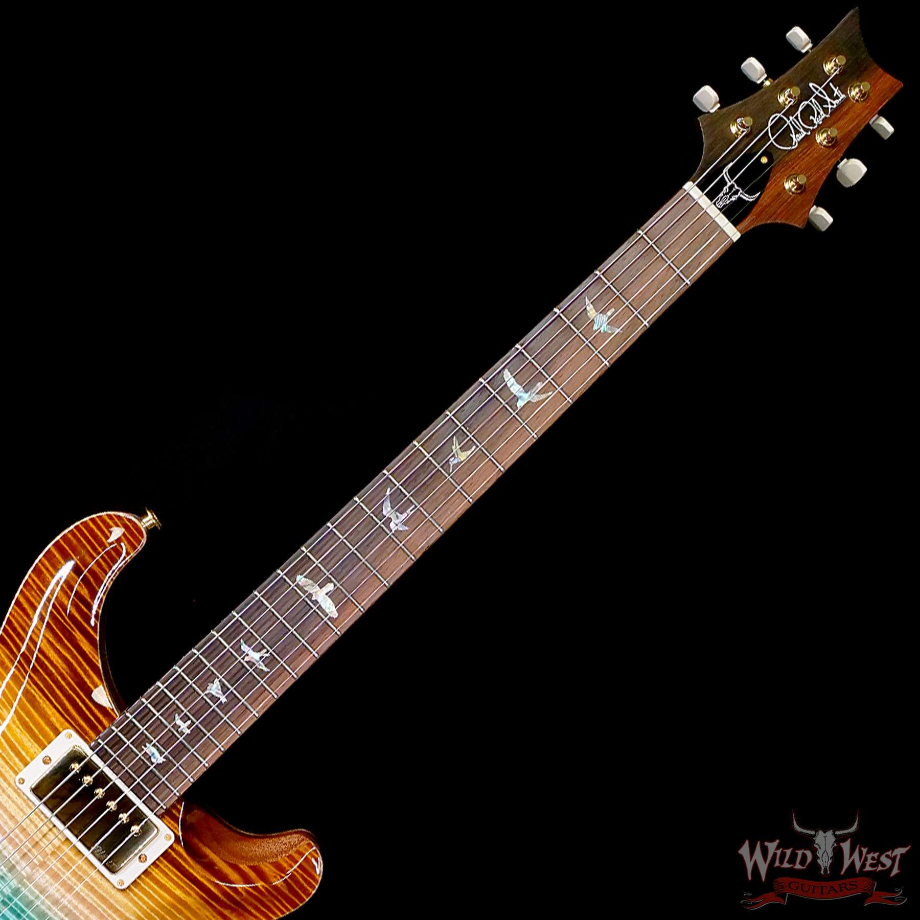 Wild West Guitars, founded in 1999, proudly presents the Wild West Guitars 25th Anniversary PRS Special Run, celebrating nearly 25 years of collaboration with PRS. This limited edition guitar features a hand-selected Artist Package Flame Maple top and back, a mahogany body and neck, and a Brazilian rosewood fingerboard. Each guitar in this special run is finished in a unique, exclusive color available only in the Private Stock series, making it a truly distinctive piece for collectors and enthusiasts. Additionally, it includes a special truss rod cover featuring the Wild West Guitars logo, adding an extra touch of uniqueness to each instrument.