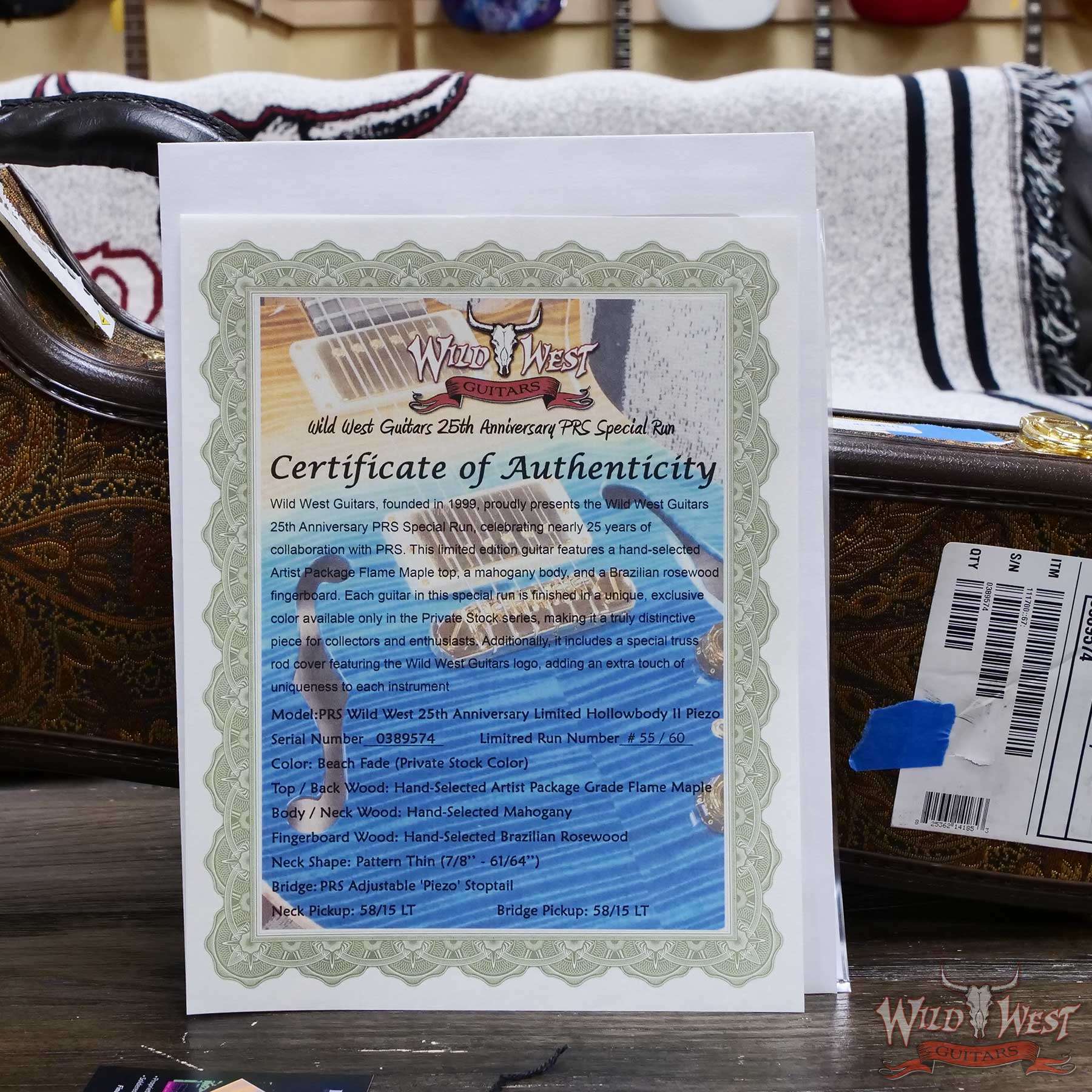 PRS Wild West Guitars 25th Anniversary Limited Run Wood Library Artist Package Hollowbody II Piezo Beach Fade (Private Stock Color) 5.75 LBS (US Only / No International Shipping)