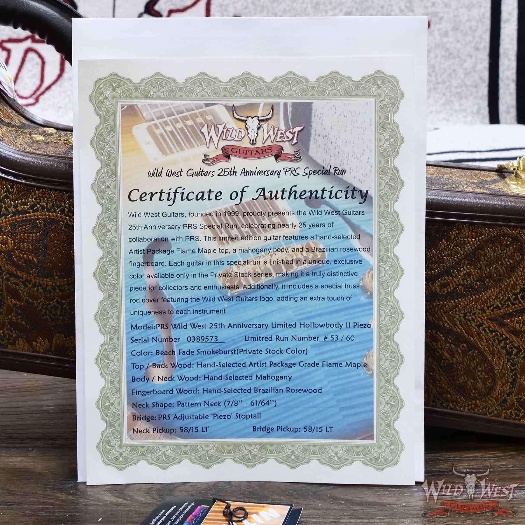 PRS Wild West Guitars 25th Anniversary Limited Run Wood Library Artist Package Hollowbody II Piezo Beach Fade Smoke Burst 5.40 LBS (US Only / No International Shipping)