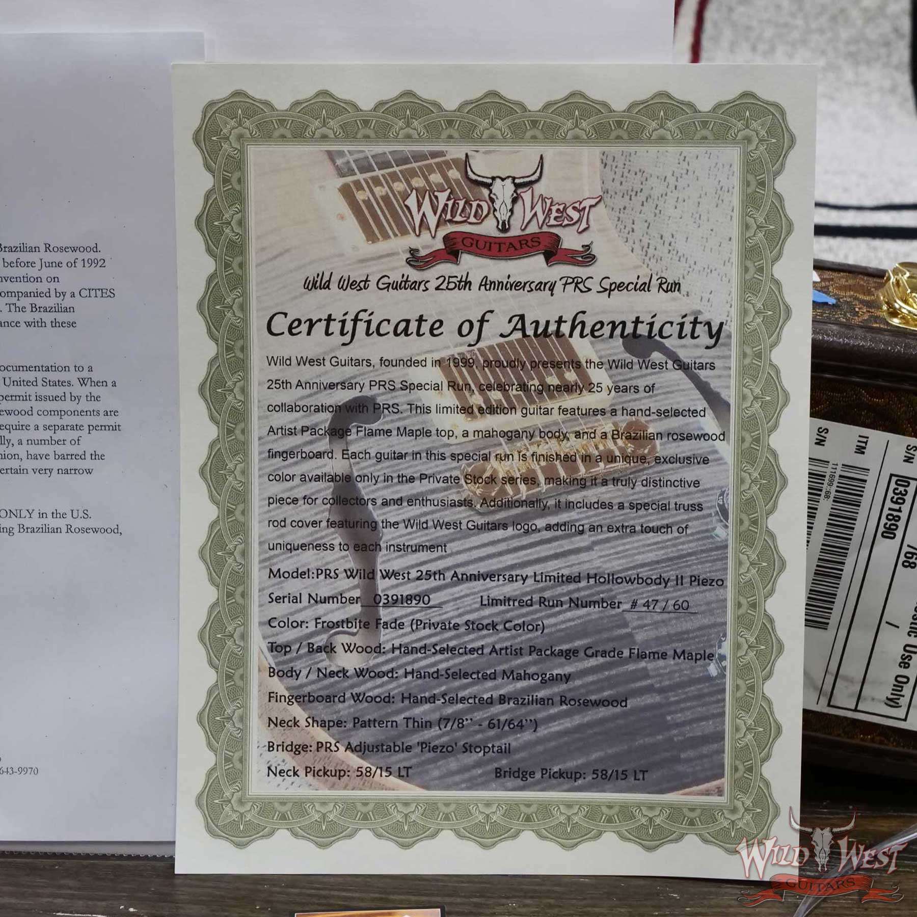 PRS Wild West Guitars 25th Anniversary Limited Run Wood Library Artist Package Hollowbody II Piezo Frostbite Fade (Private Stock Color) 5.60 LBS (US Only / No International Shipping)