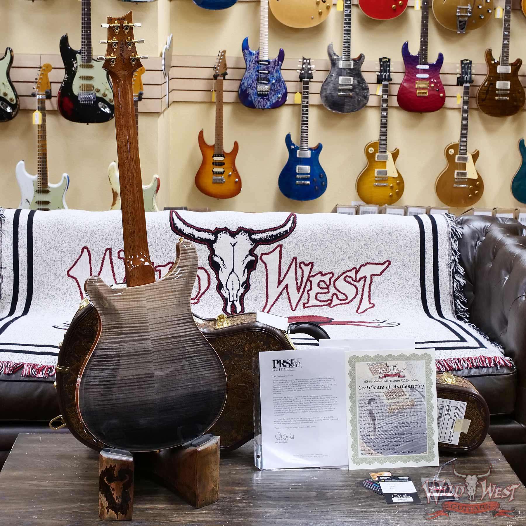 Wild West Guitars, founded in 1999, proudly presents the Wild West Guitars 25th Anniversary PRS Special Run, celebrating nearly 25 years of collaboration with PRS. This limited edition guitar features a hand-selected Artist Package Flame Maple top and back, a mahogany body and neck, and a Brazilian rosewood fingerboard. Each guitar in this special run is finished in a unique, exclusive color available only in the Private Stock series, making it a truly distinctive piece for collectors and enthusiasts. Additionally, it includes a special truss rod cover featuring the Wild West Guitars logo, adding an extra touch of uniqueness to each instrument.