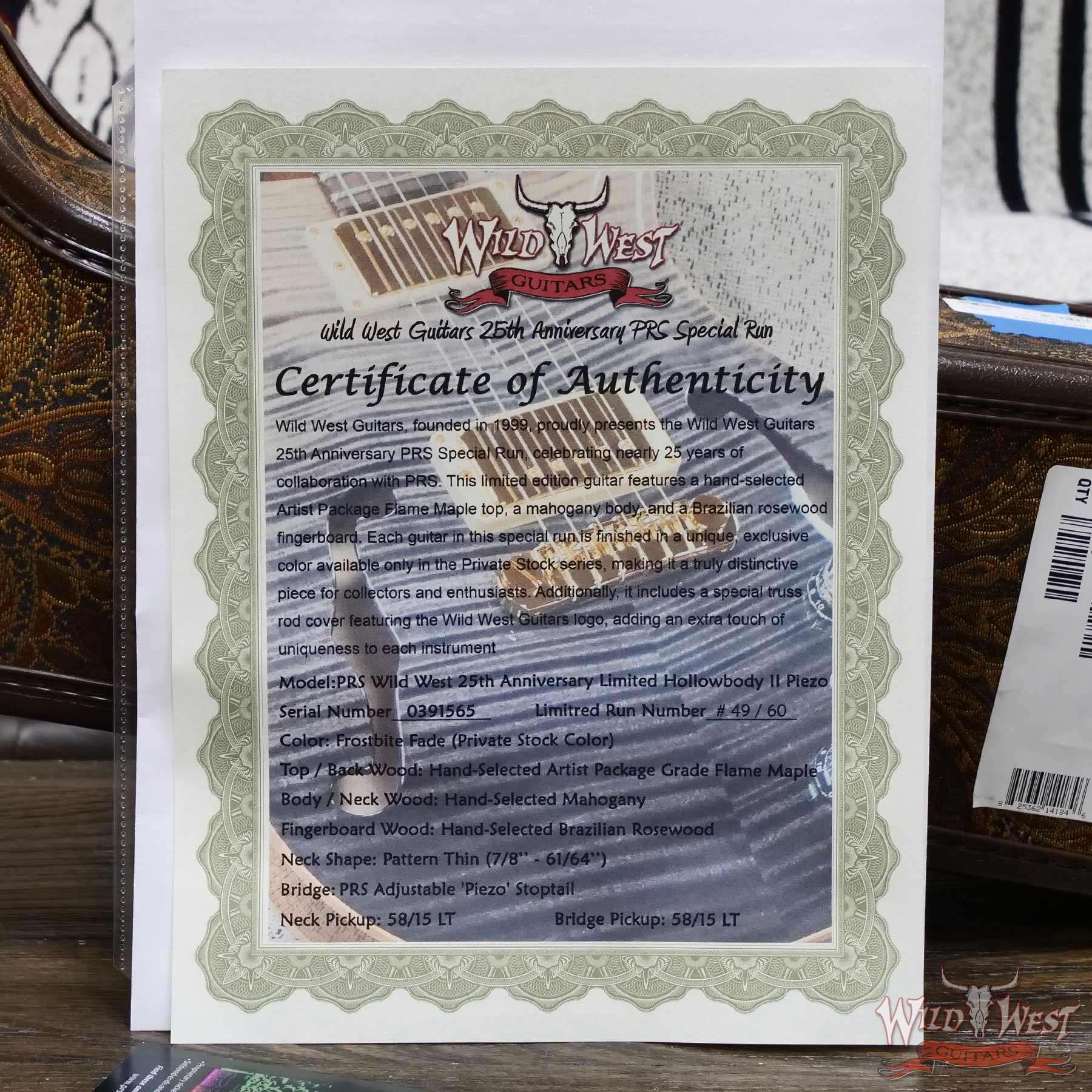 PRS Wild West Guitars 25th Anniversary Limited Run Wood Library Artist Package Hollowbody II Piezo Frostbite Fade (Private Stock Color) 5.60 LBS (US Only / No International Shipping)