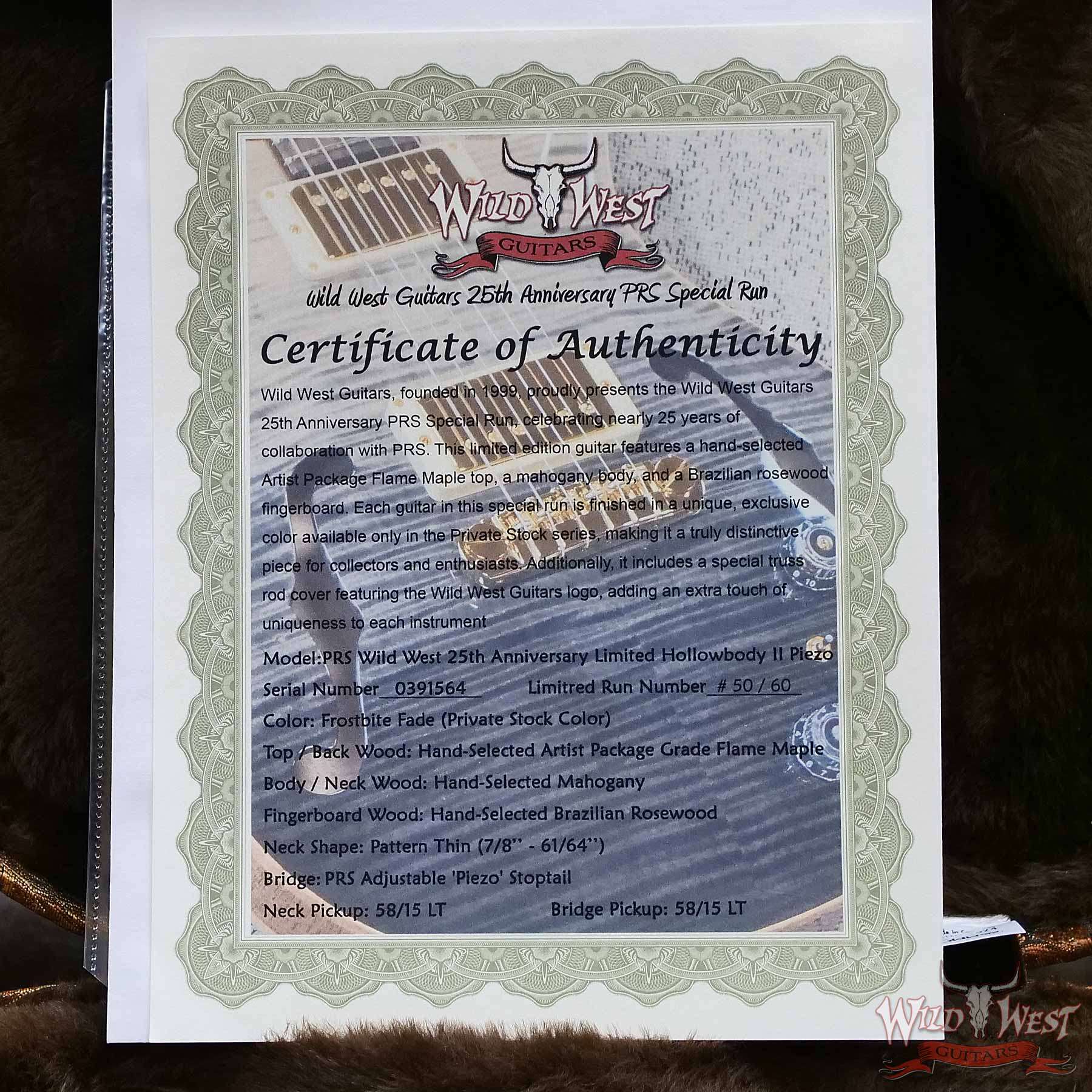 PRS Wild West Guitars 25th Anniversary Limited Run Wood Library Artist Package Hollowbody II Piezo Frostbite Fade (Private Stock Color) 5.60 LBS (US Only / No International Shipping)