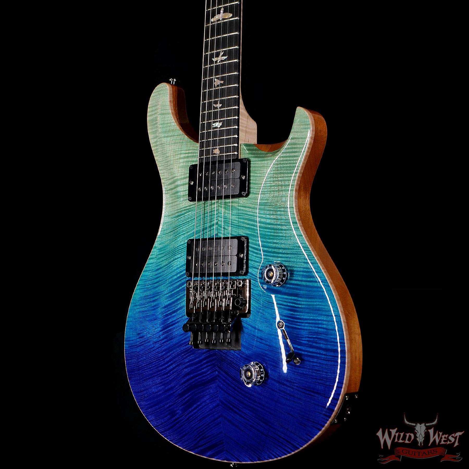 PRS Wood Library 10 Top Custom 24 Floyd Rose Ebony Fingerboard AAA Flame Maple Neck Blue Fade