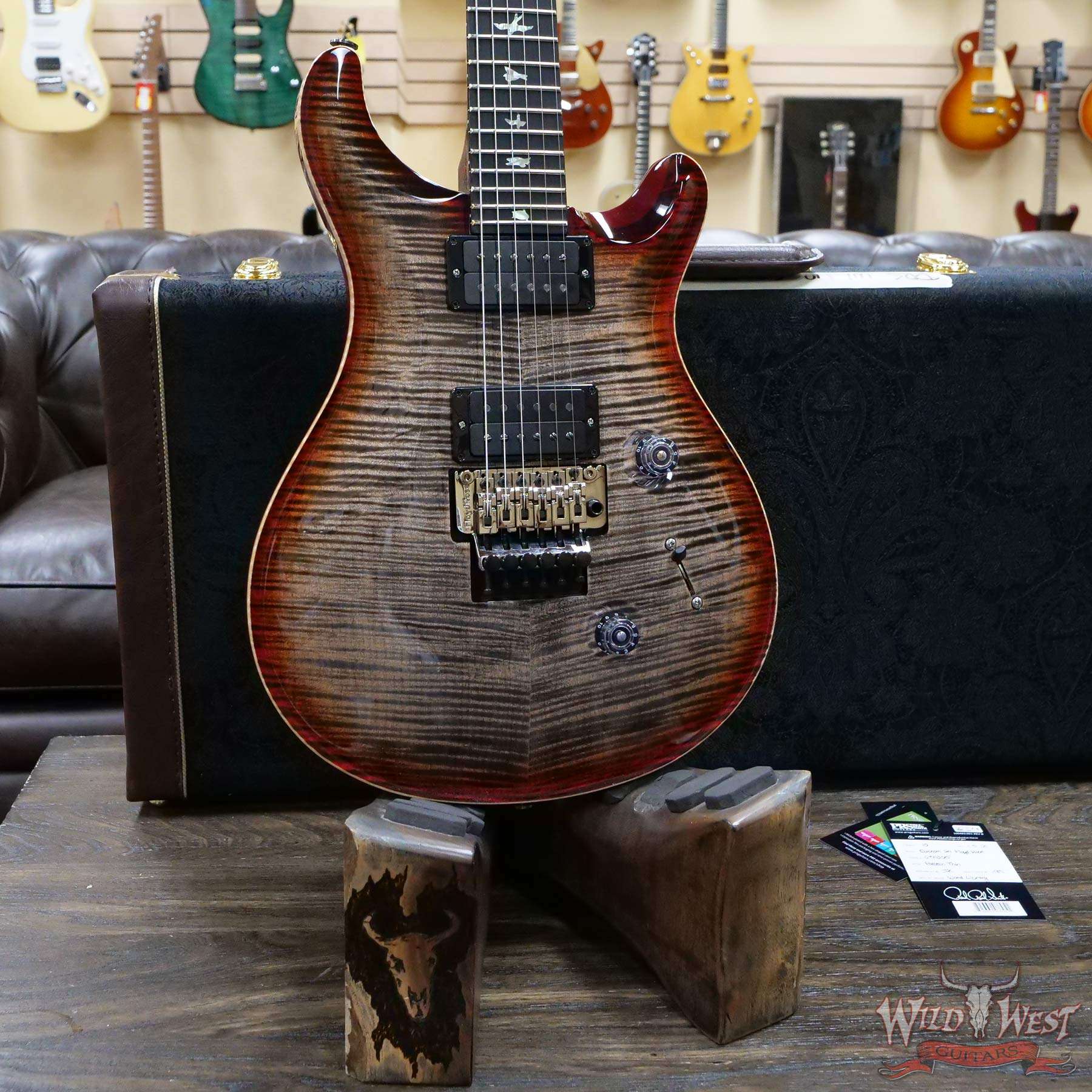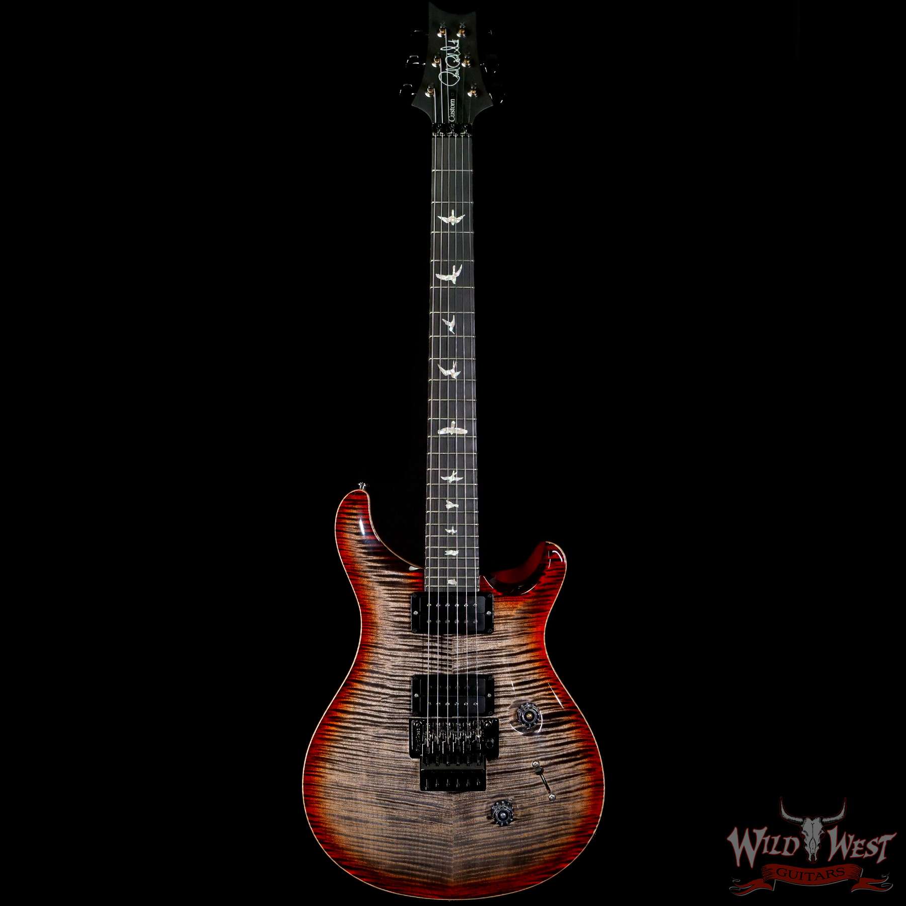 PRS Wood Library 10 Top Custom 24 Floyd Rose Ebony Fingerboard AAA Flame Maple Neck Charcoal Cherry Burst