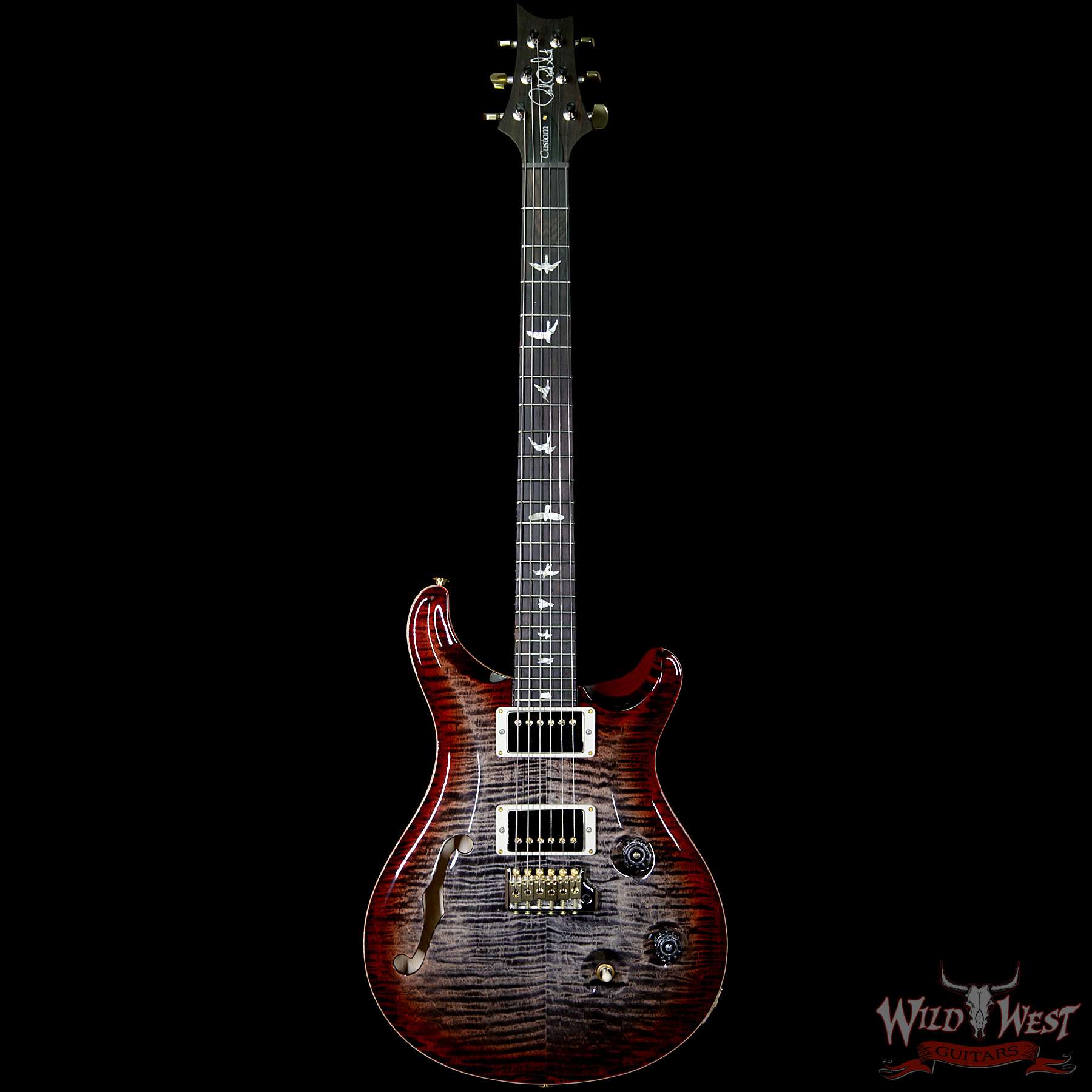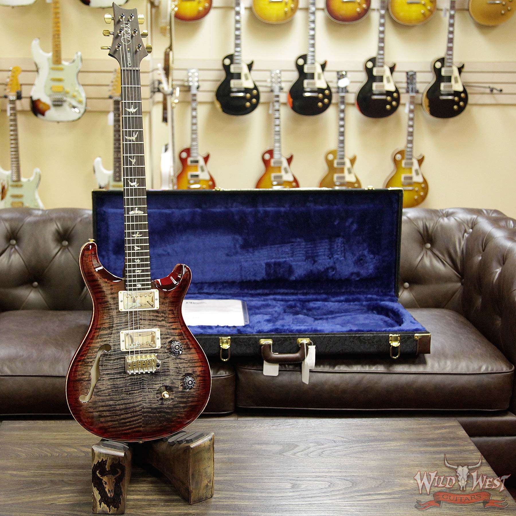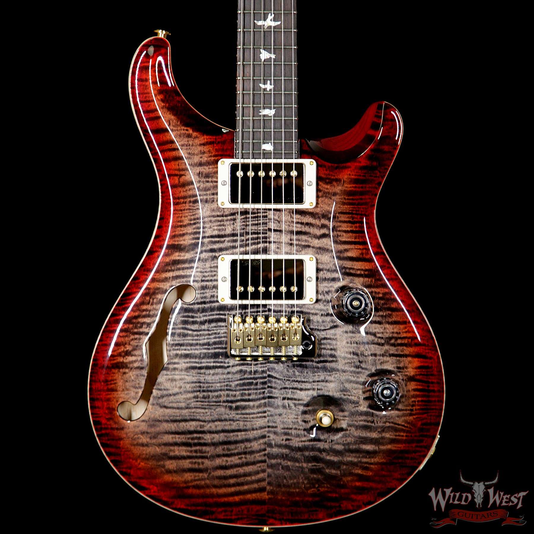 Paul Reed Smith PRS Wood Library 10 Top Custom 24 Semi-Hollow Flame Top & Neck Brazilian Rosewood Board Charcoal Cherry Burst