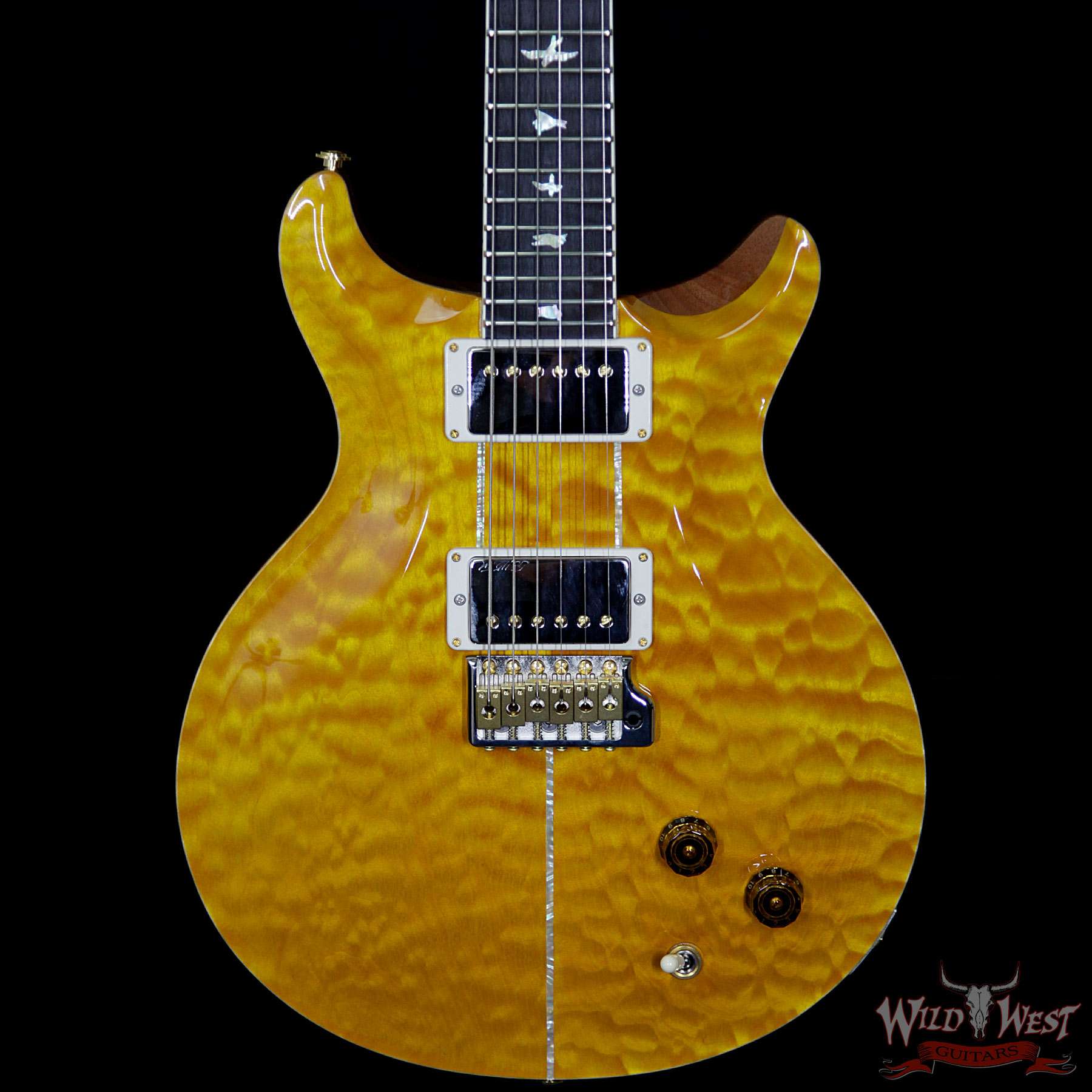 PRS Wood Library Santana Retro Quilt Top Flame Mahogany Neck Brazilian Rosewood Board Santana Yellow