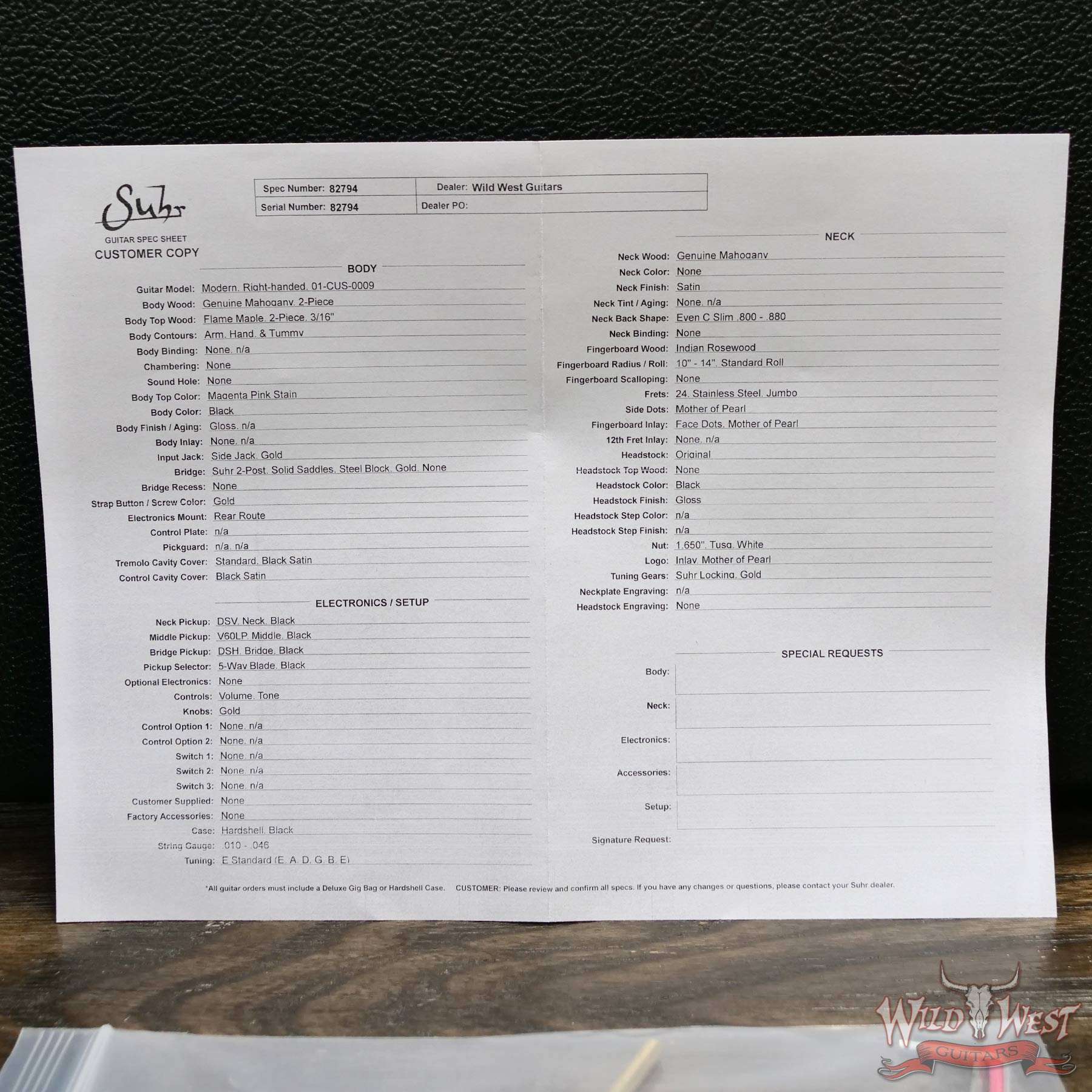 Suhr Custom Modern HSH Flame Maple Top Genuine Mahogany Body & Neck Indian Rosewood Fingerboard Magenta Pink Stain 7.30 LBS