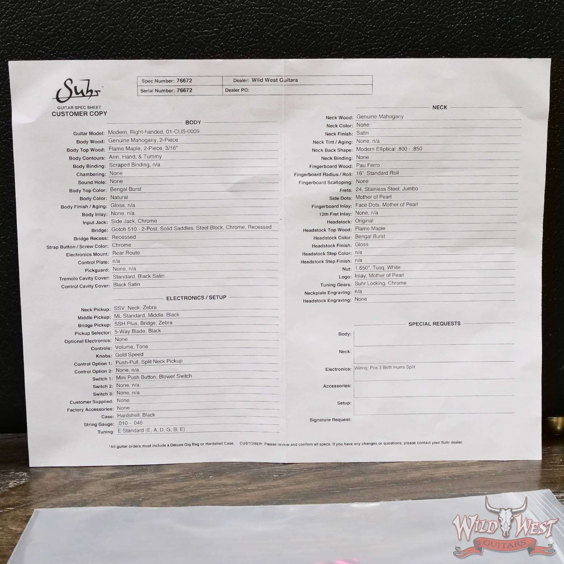 Suhr Custom Modern HSH with Blower Switch Flame Maple Top Bengal Burst 7.40 LBS