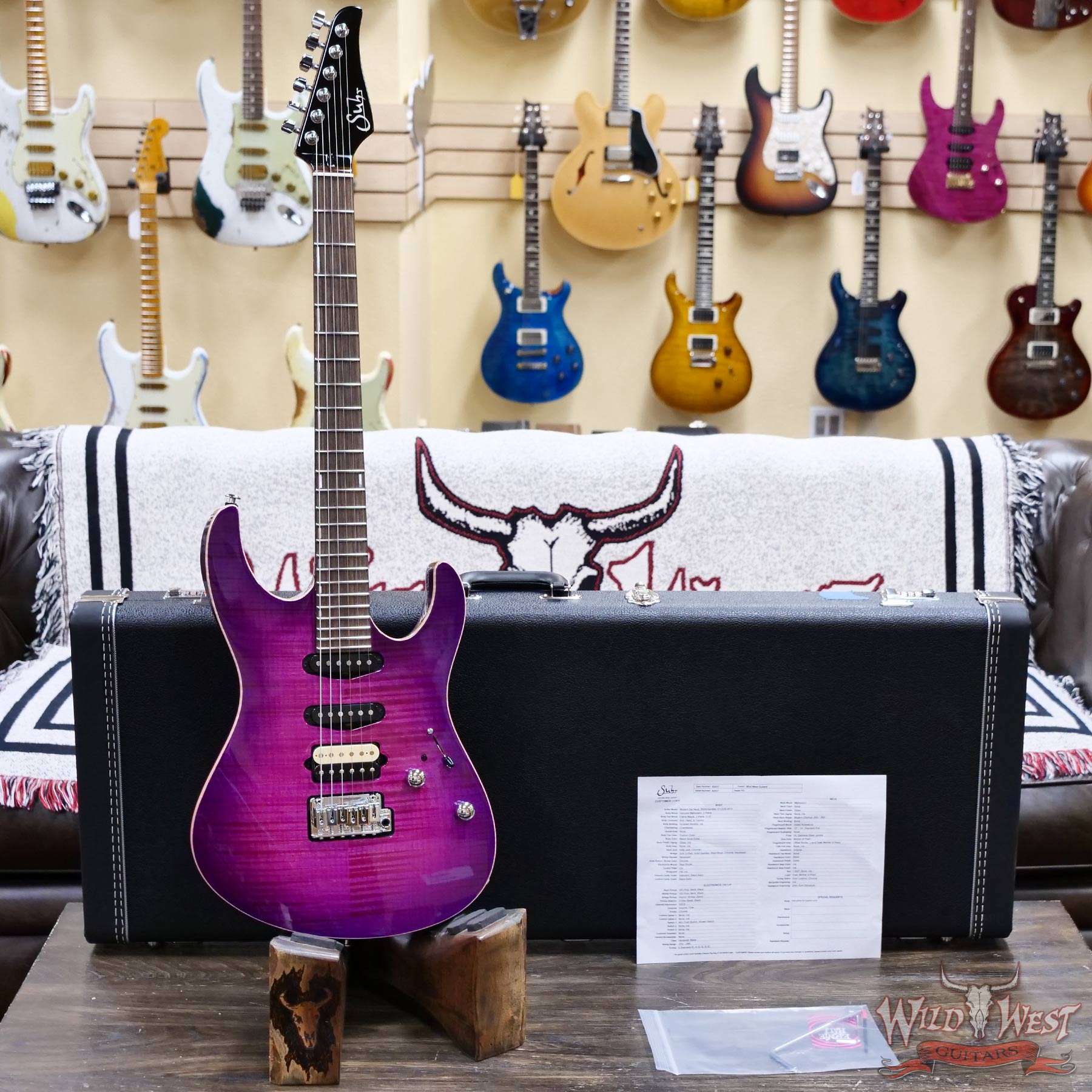 Suhr Custom Set Neck Modern HSS Flame Maple Top Mahogany Body & Neck SSCII System Blower Switch 24 Stainless Steel Jumbo Frets Rasberry Burst (Custom Color) 6.90 LBS