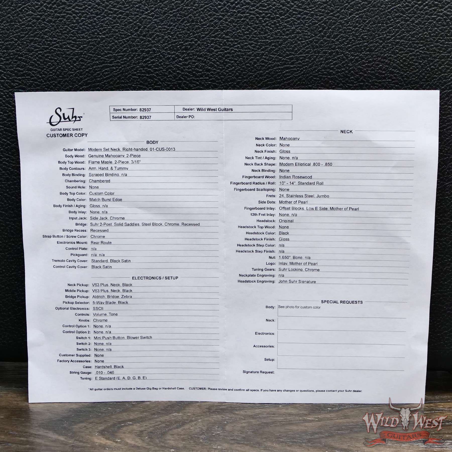 Model | Suhr Custom Set Neck Modern HSS |