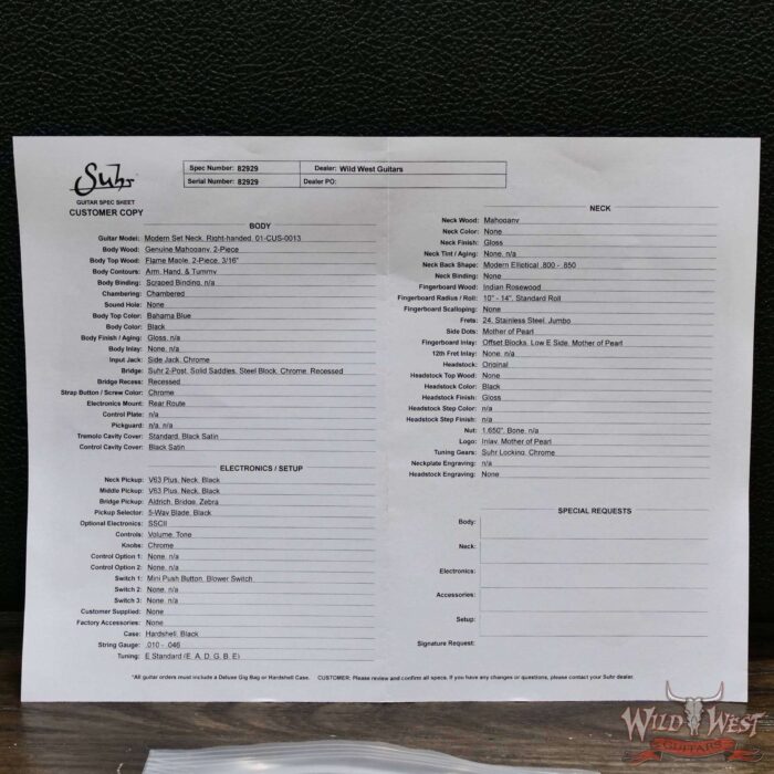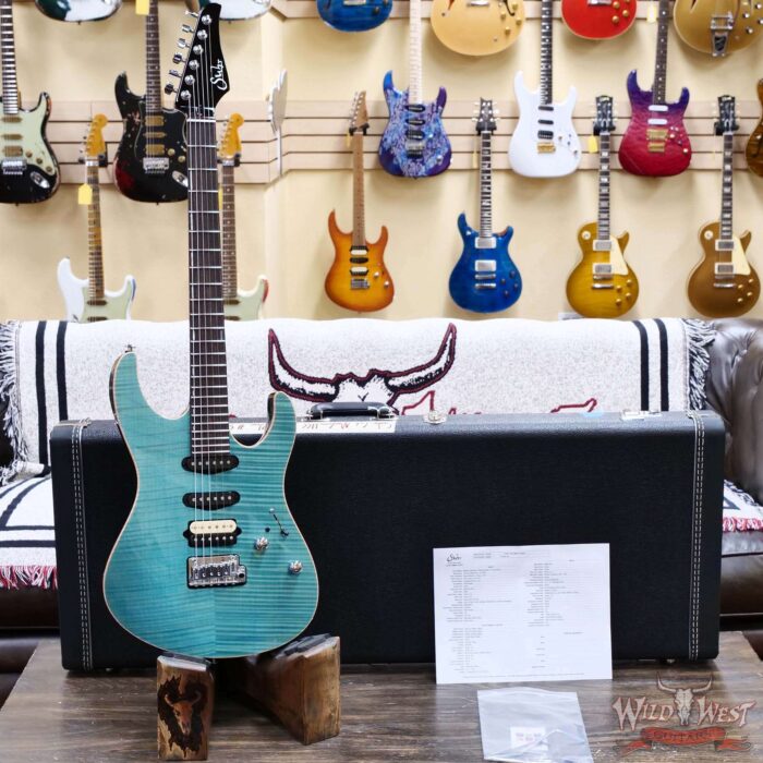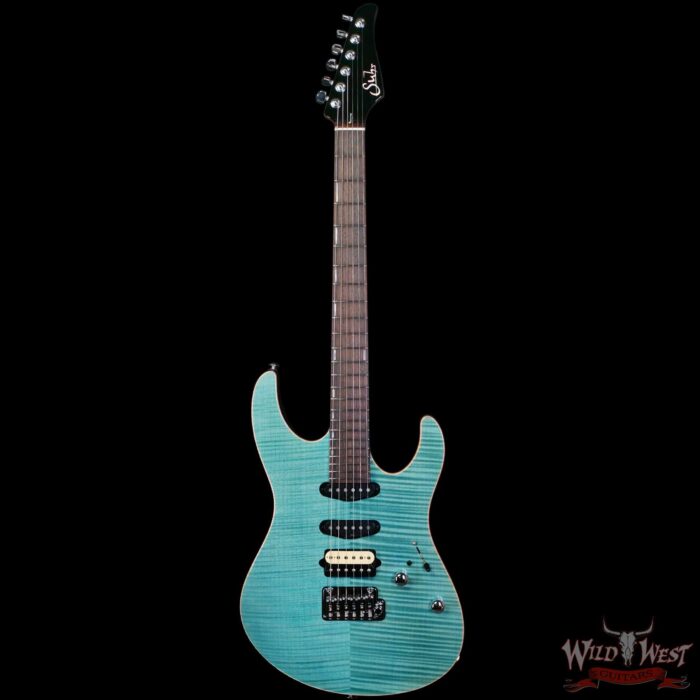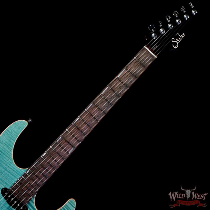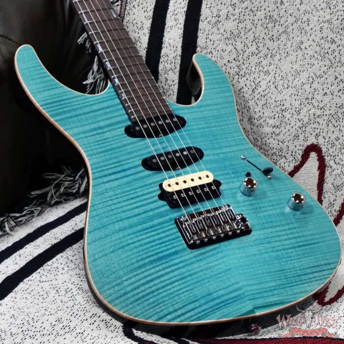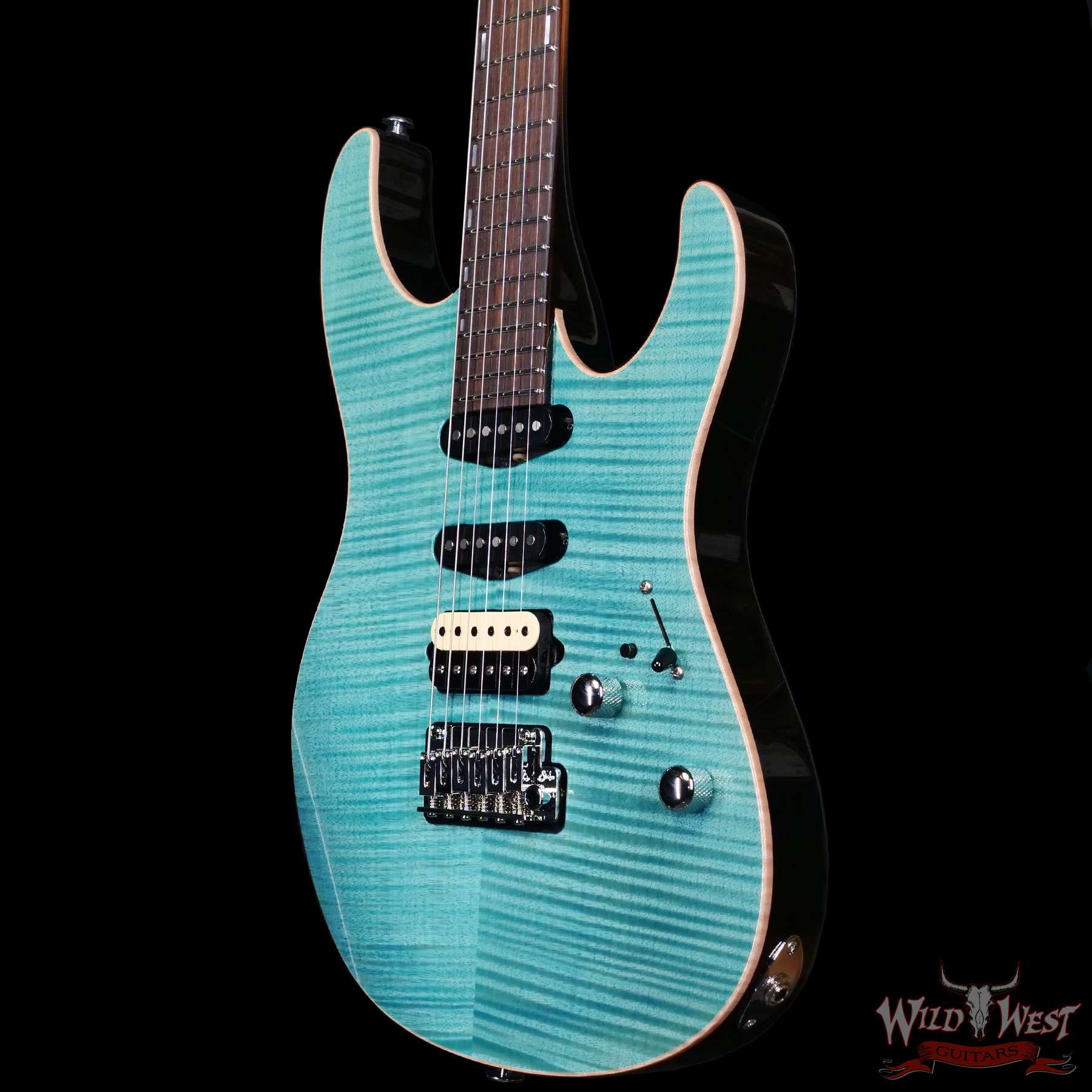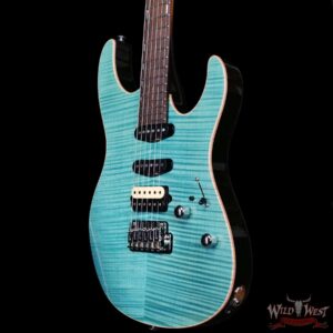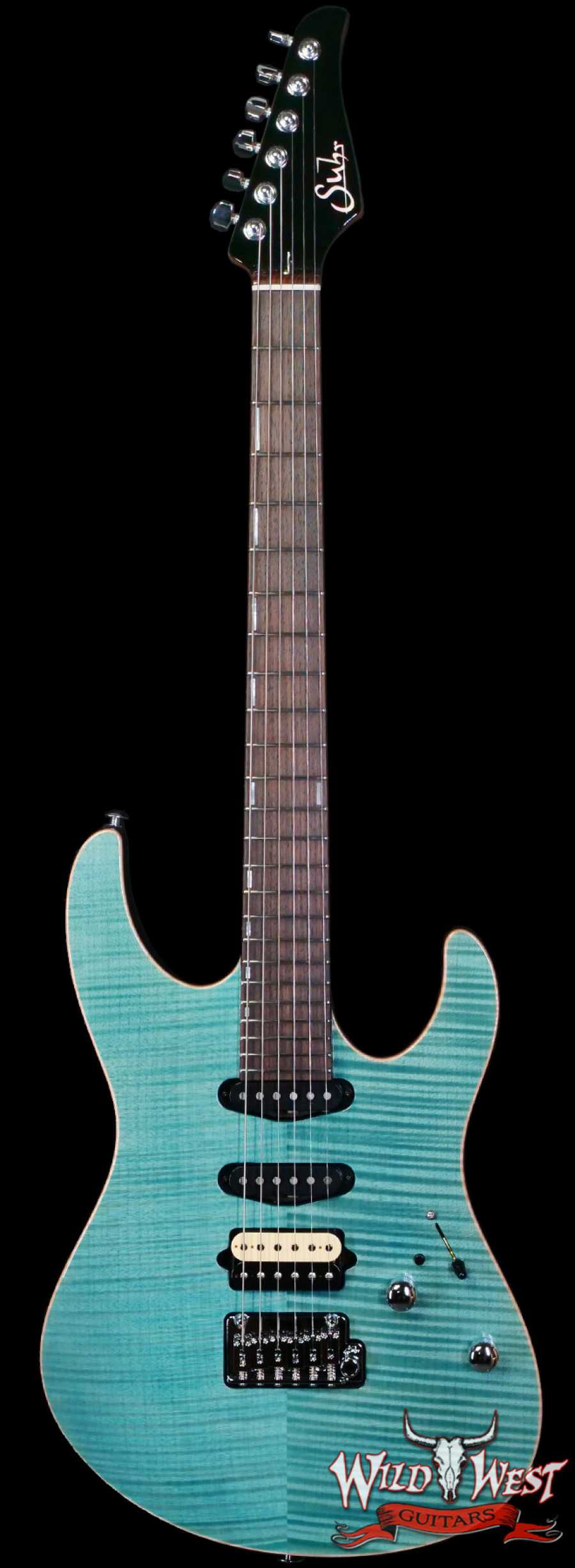 Suhr Custom Set Neck Modern HSS Flame Maple Top SSCII System Blower Switch 24 Stainless Steel Jumbo Frets Bahama Blue 7.25 lbs