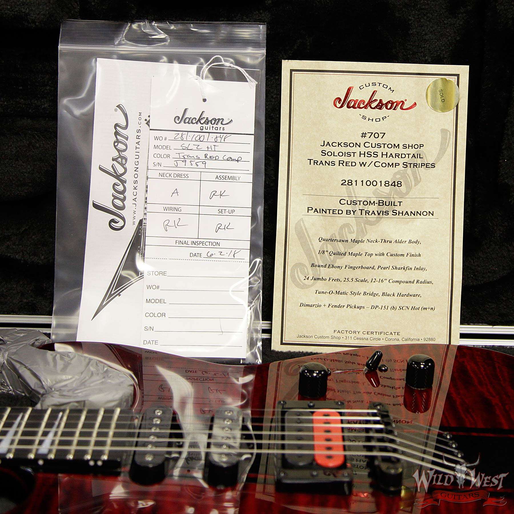 2018 Summer Event #707 Jackson Custom Shop Soloist HSS Hardtail Trans Red w/ Comp Stripes Painted by Travis Shannon