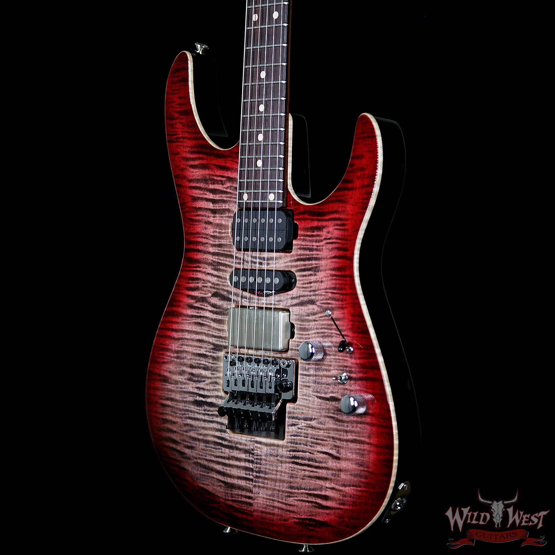 Model: Tom Anderson Angel HSH Floyd Flame Top Chocolate Maple Neck Rosewood Board Natural Black to T-Red Burst with Binding